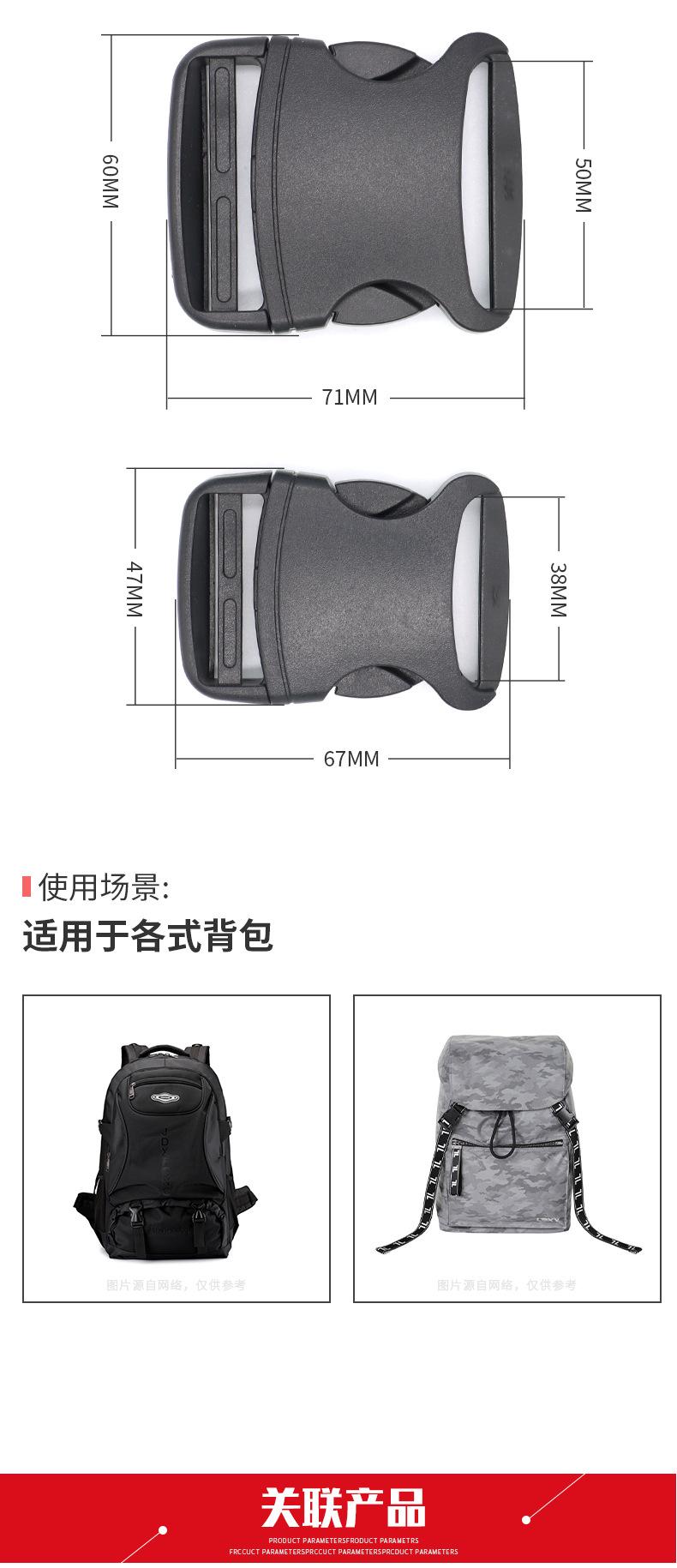Accesorios de equipaje de plástico de fábrica, riñonera, hebilla de un solo tirón, hebilla de cincha, mochila, hebilla de plástico