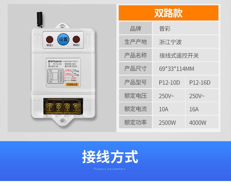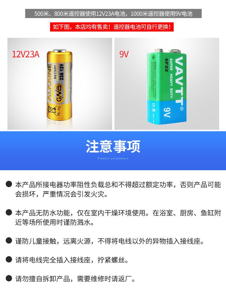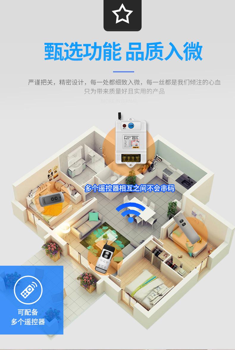 Interruptor de control remoto inalámbrico de 1 kW y 6 kW de alta potencia para bomba de agua con control remoto de pared.
