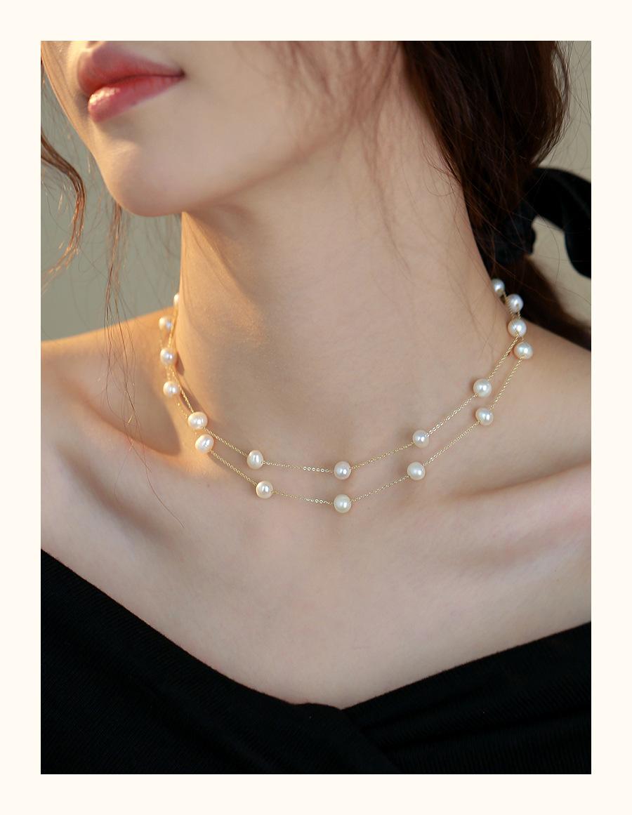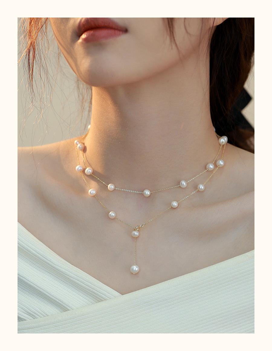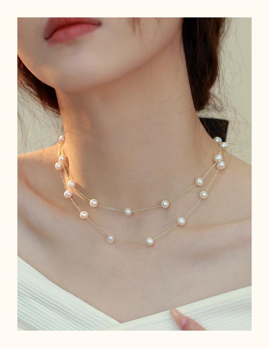 Collar de perlas naturales para mujer, estilo francés, de alta calidad, con estrellas, para otoño e invierno, cadena de suéter larga apilada, cadena multiusos.