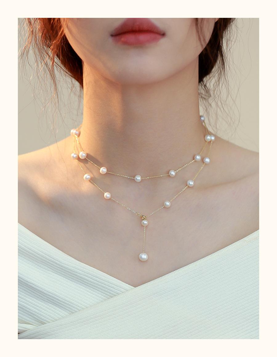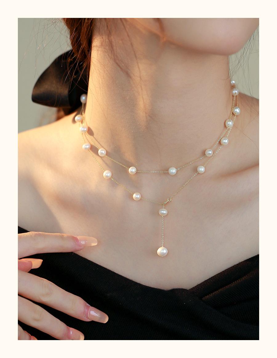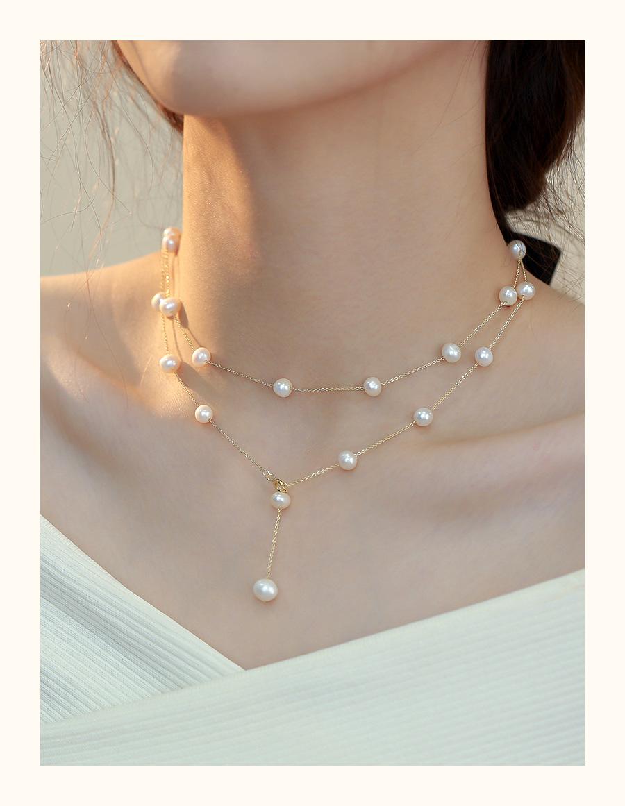 Collar de perlas naturales para mujer, estilo francés, de alta calidad, con estrellas, para otoño e invierno, cadena de suéter larga apilada, cadena multiusos.