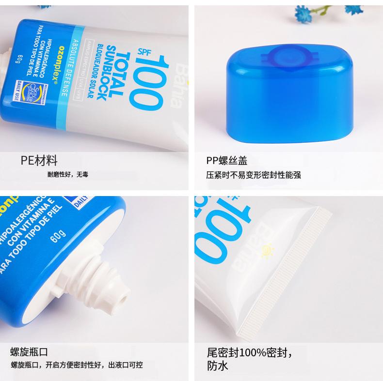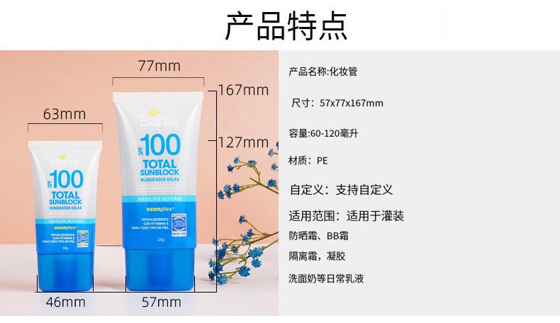 Loción protectora solar de 120 g, manguera de plástico PE, crema de manos, crema aislante, tubo compuesto de plástico de aluminio, productos para el cuidado de la piel, material de embalaje
