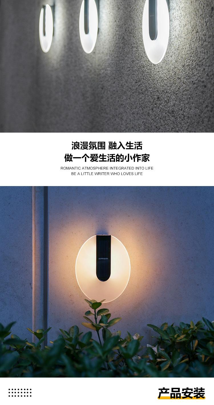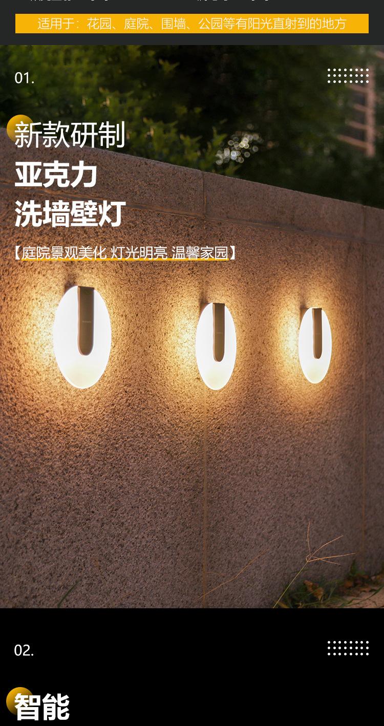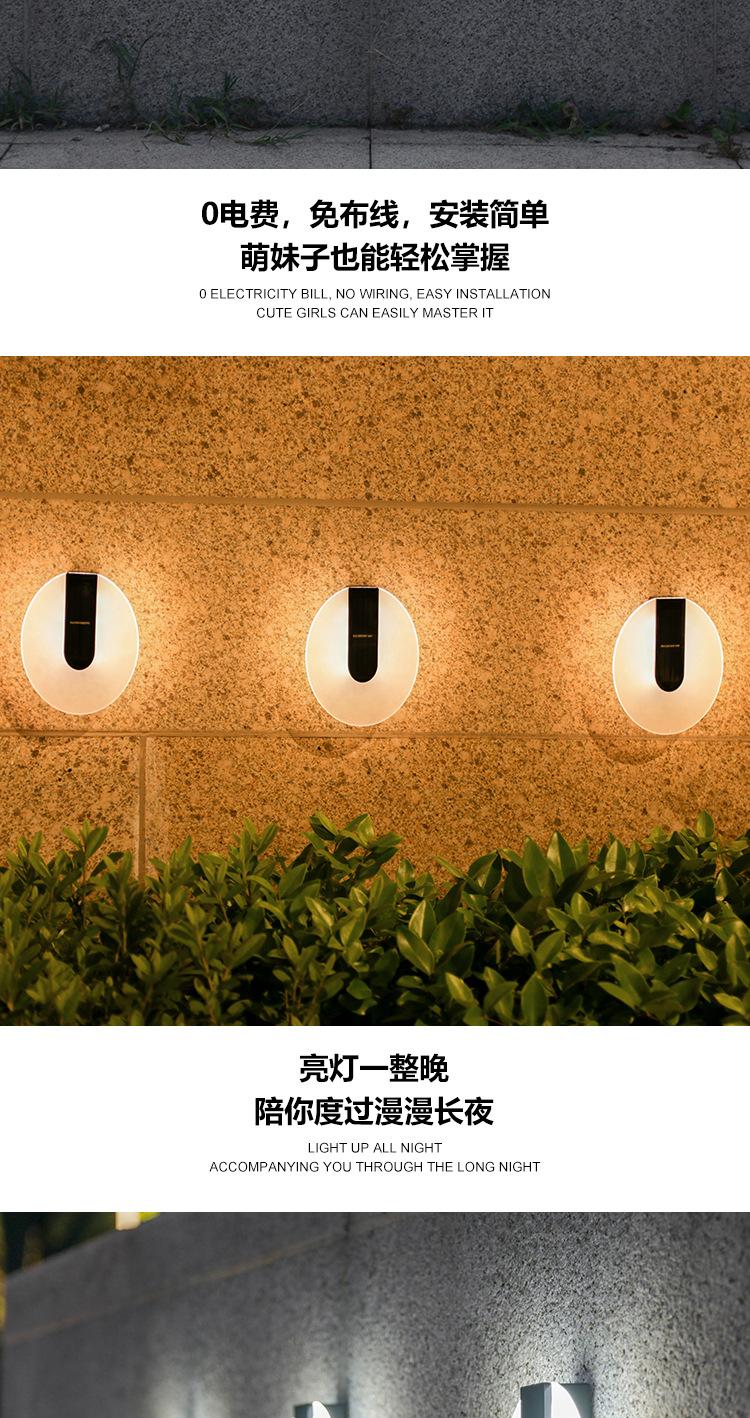 Lámpara solar para jardín, exterior, impermeable, luminosa, para decoración de pared, para patio, bañador de pared, lámpara de pared acrílica ovalada.