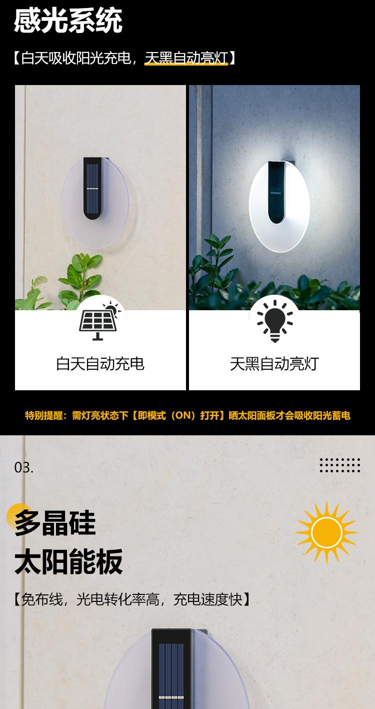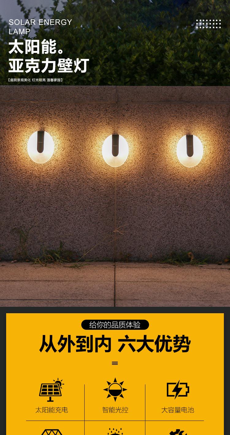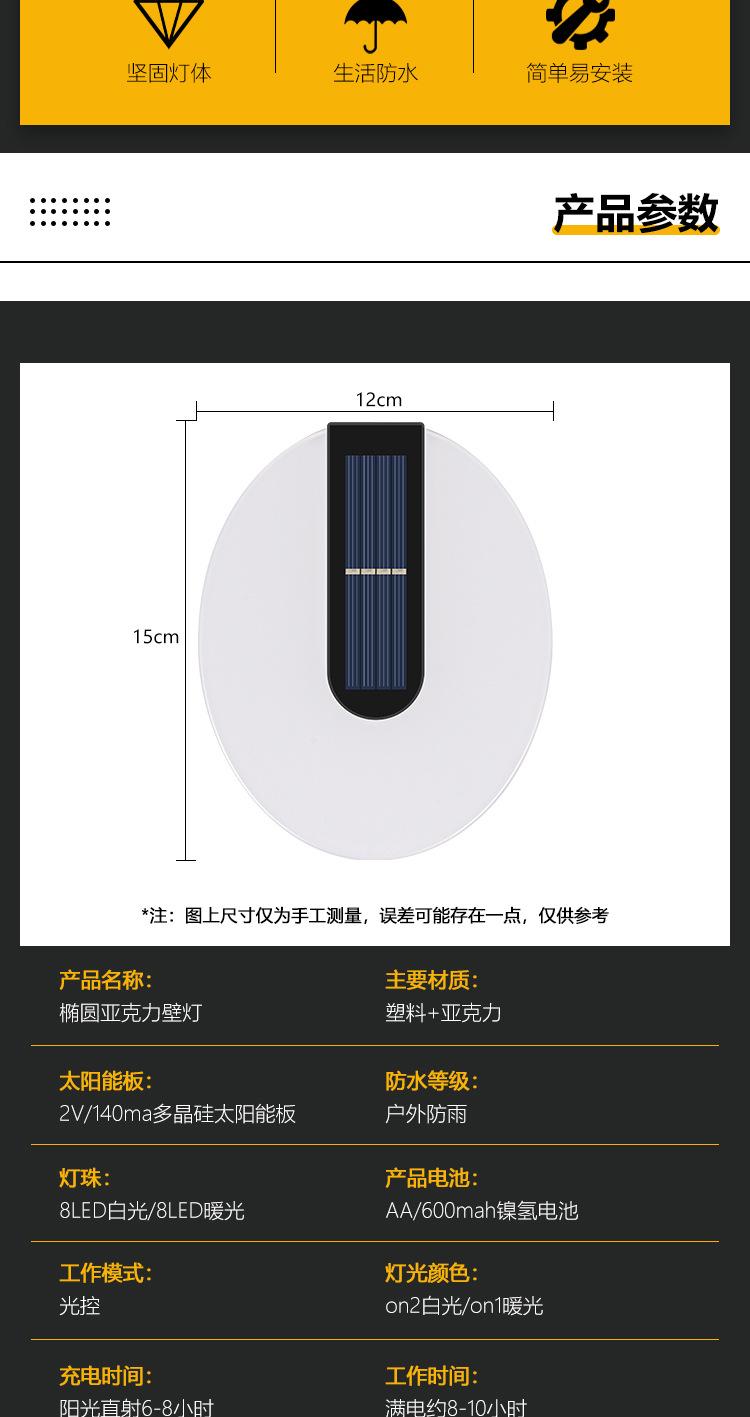 Lámpara solar para jardín, exterior, impermeable, luminosa, para decoración de pared, para patio, bañador de pared, lámpara de pared acrílica ovalada.