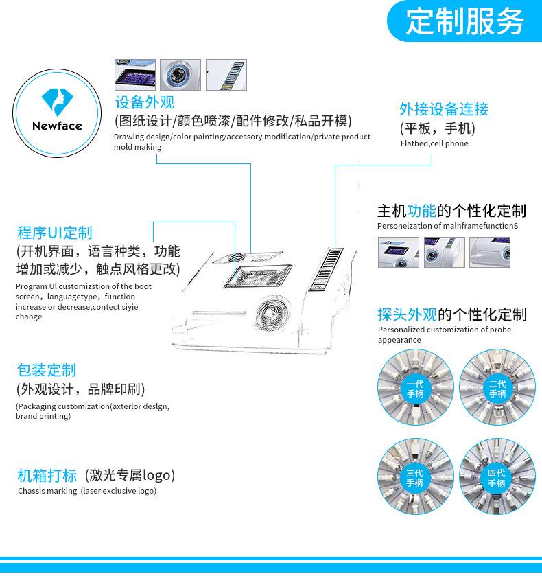 Dispositivo de Belleza Cuatro en Uno para Limpieza Facial, Lifting, Peeling Superconductor Frío y Caliente, Microescultura Diamante, Cuidado de la Piel Personalizado Newface