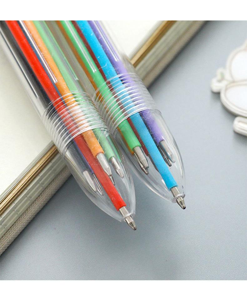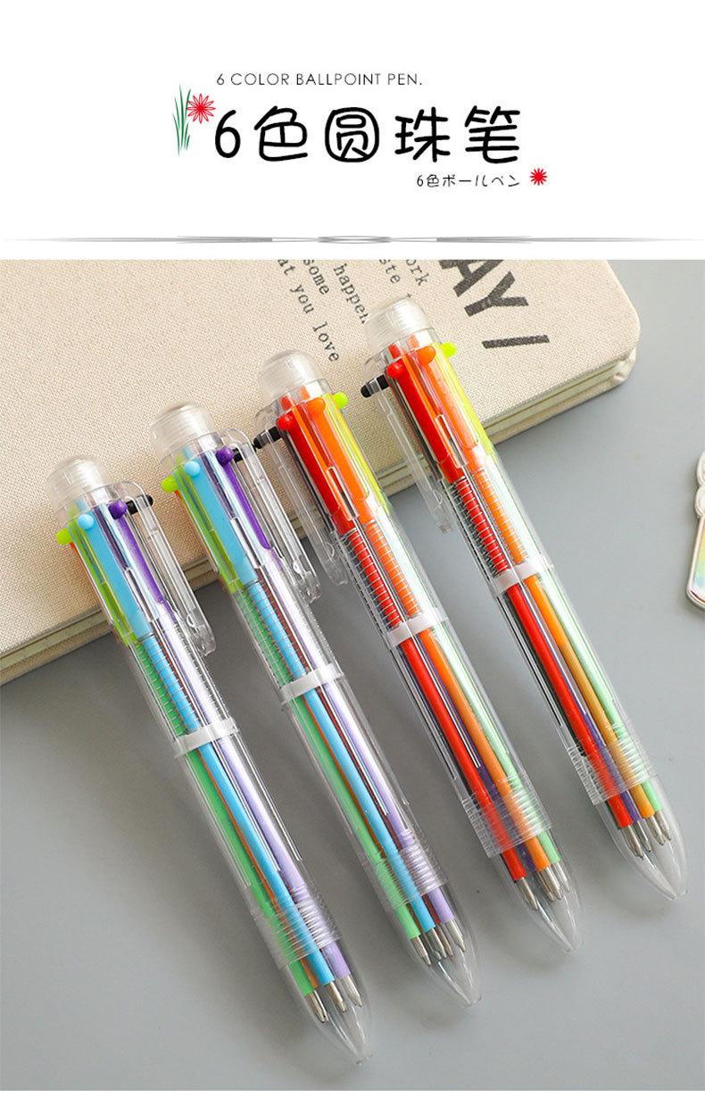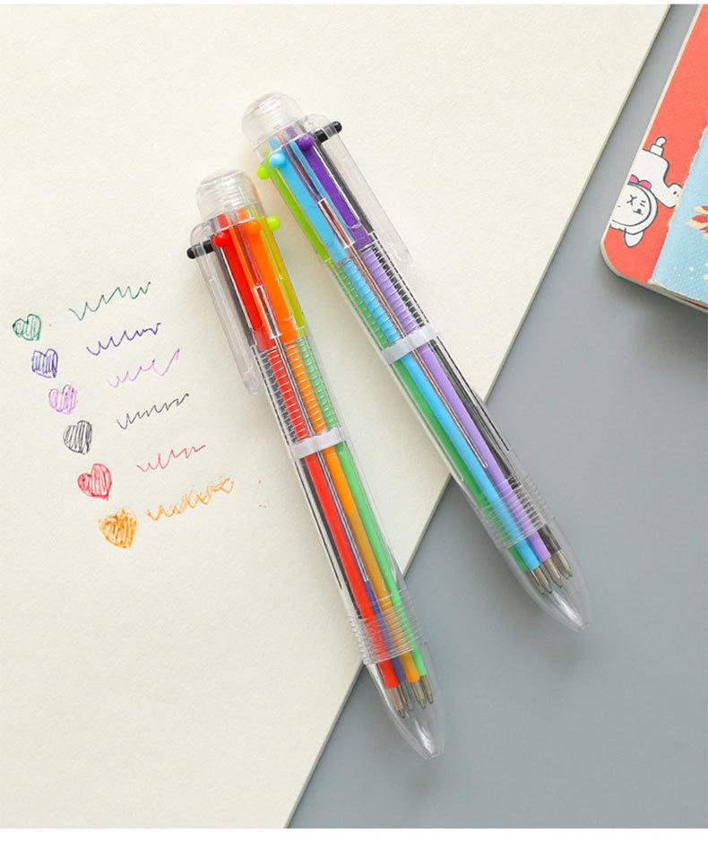 Nombre del producto: bolígrafo transparente de 6 colores; Material del producto: plástico + recambio; Tamaño del producto: 14.2cm; Embalaje del producto: 50 piezas/bolsa opp; Peso del producto: 14g; Cantidad de embalaje: 2250 piezas/caja