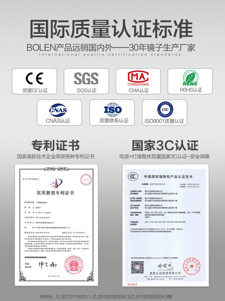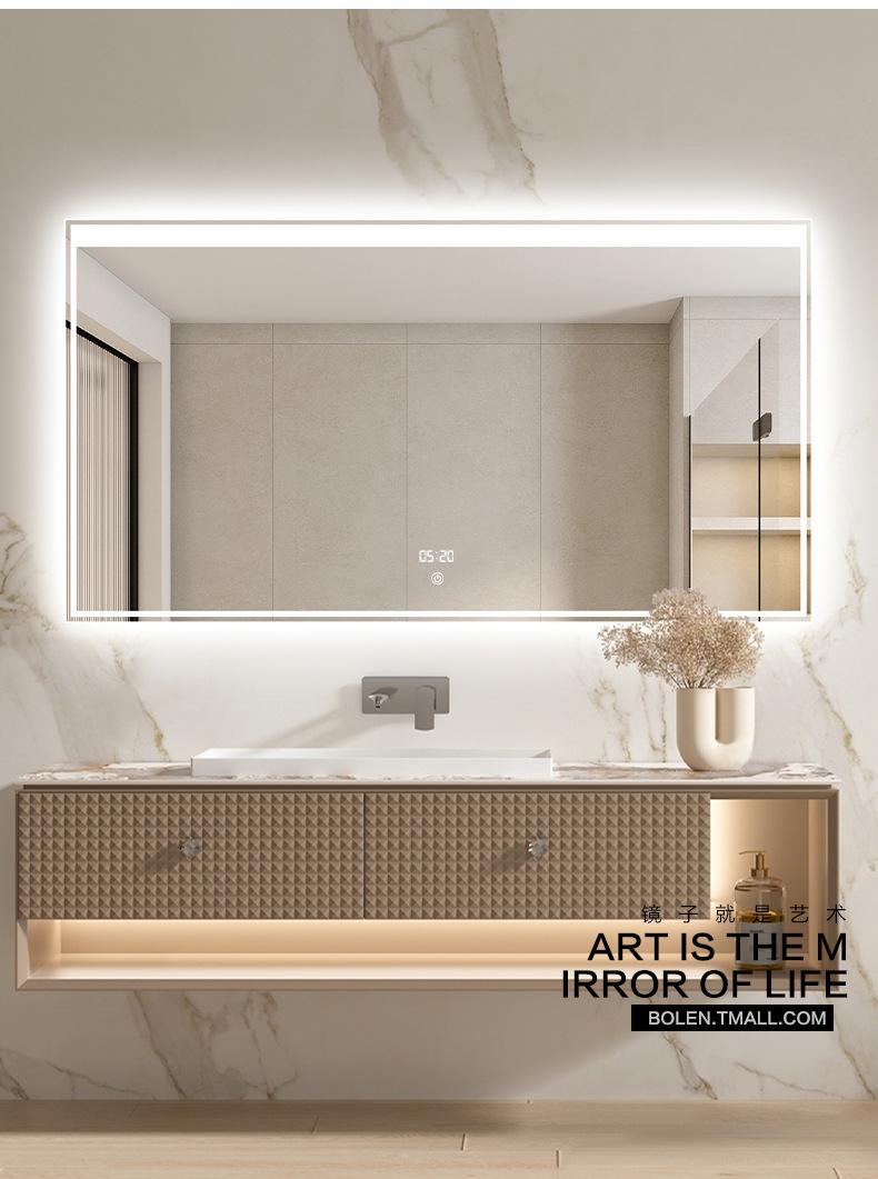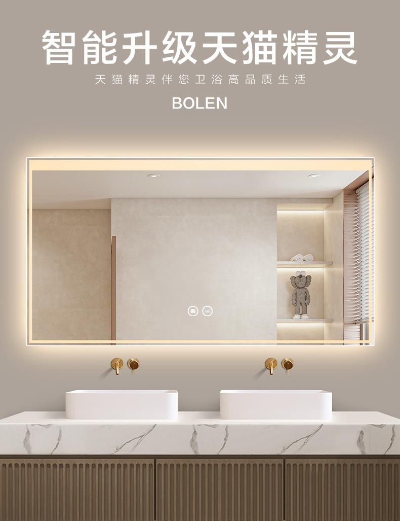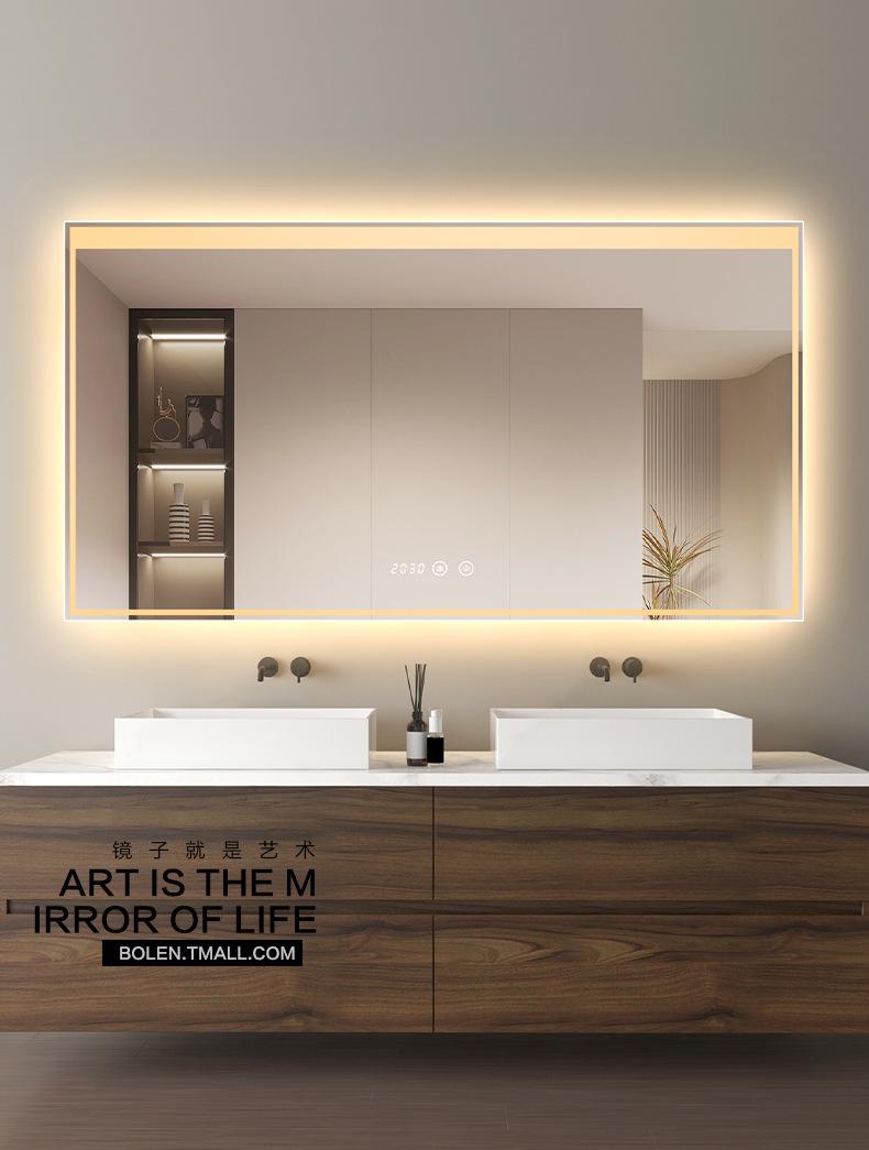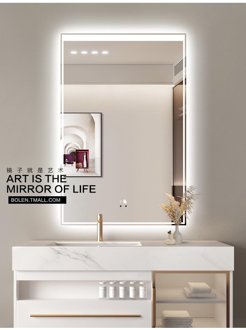 Espejo de Baño Cuadrado Bolen Hotel Espejo Inteligente con Luz LED Táctil para Maquillaje Montado en la Pared para Baño en Casa