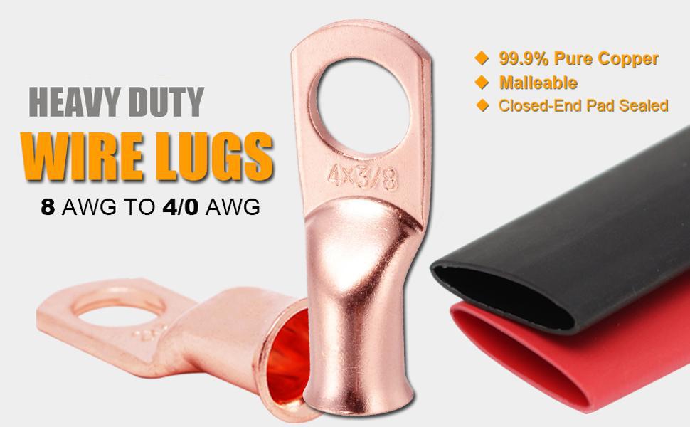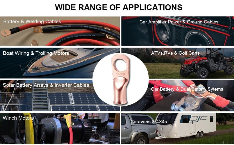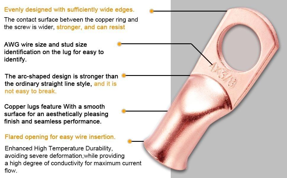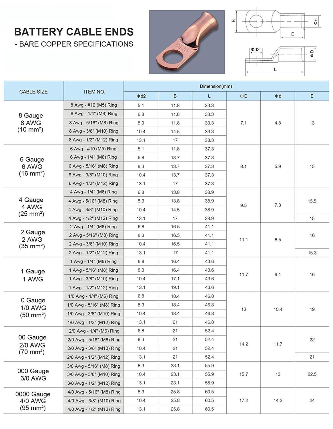 Terminal AWG estándar americano transfronterizo, terminal de cobre dorado, conector de terminal de batería tipo anillo, terminal de presión en frío
