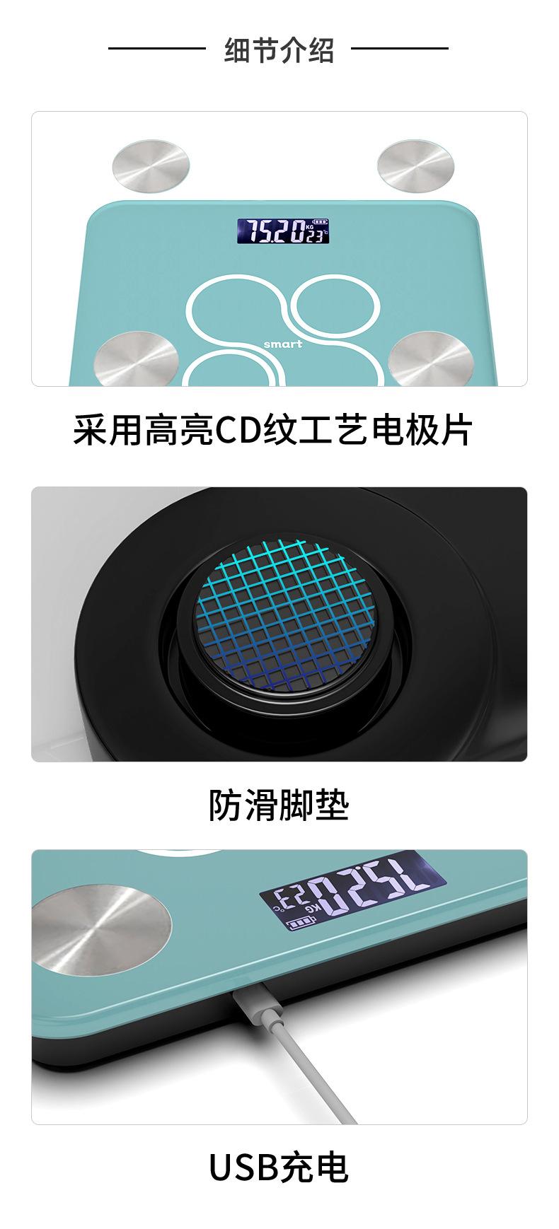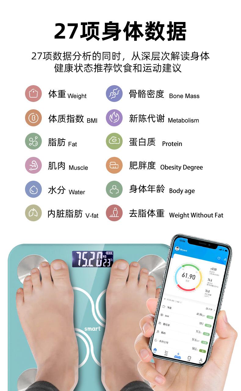 Báscula electrónica transfronteriza de precisión para el cuerpo humano, báscula de grasa corporal doméstica, báscula inteligente con Bluetooth y carga para medir la grasa corporal.