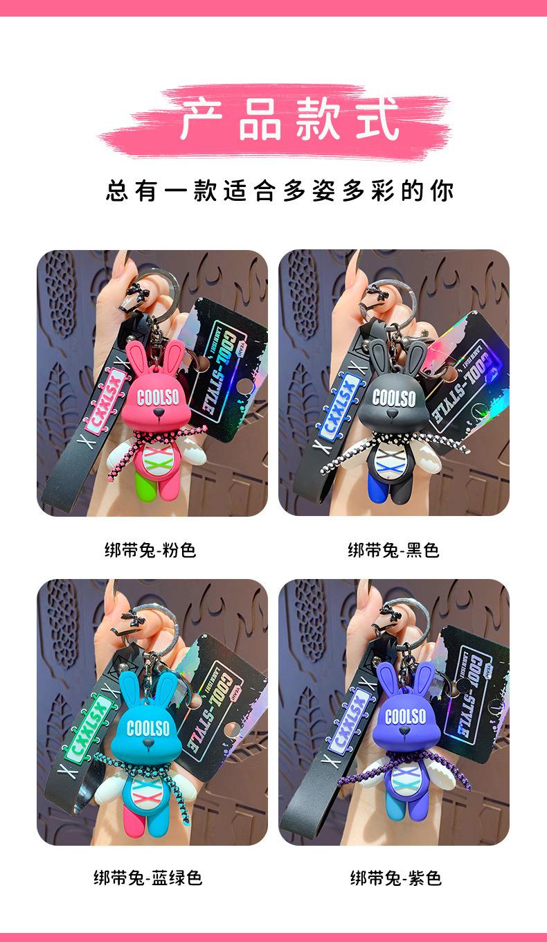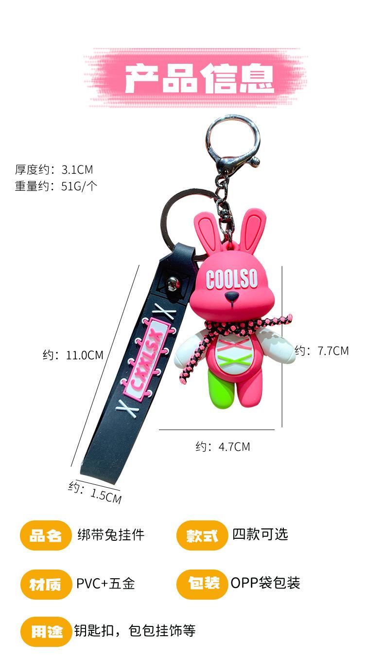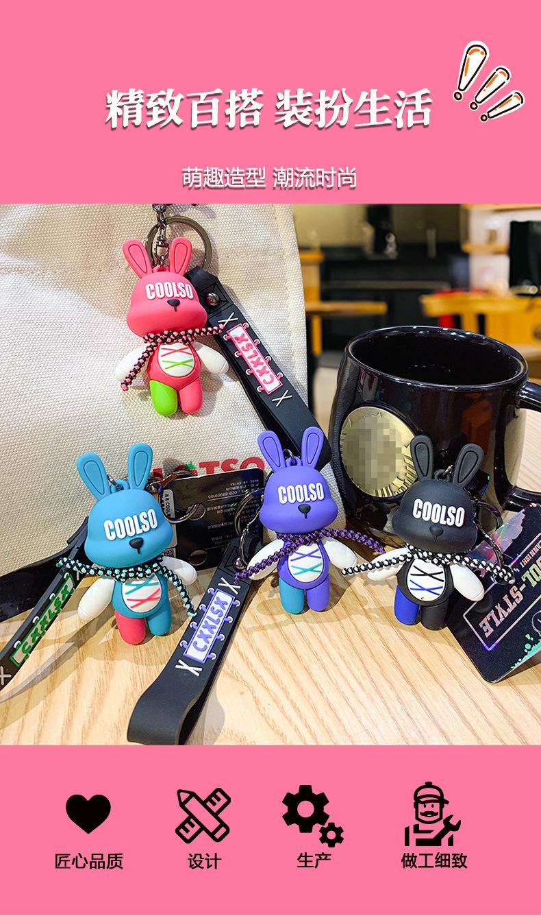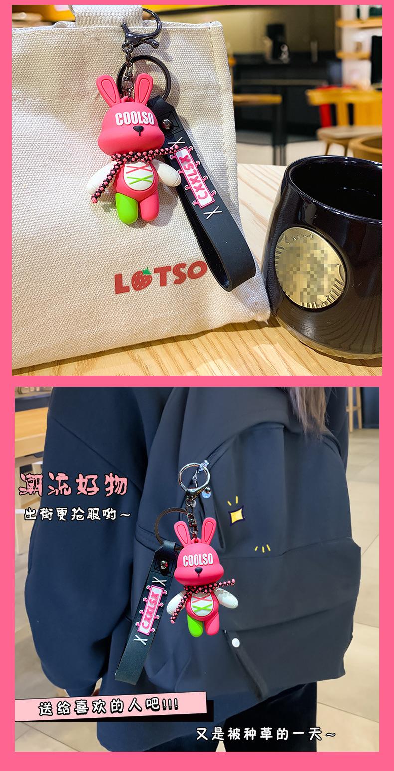LLavero de conejo con correa de dibujos animados, colgante para pareja, bolso de escuela, exquisito llavero de coche, colgante, pequeño regalo al por mayor