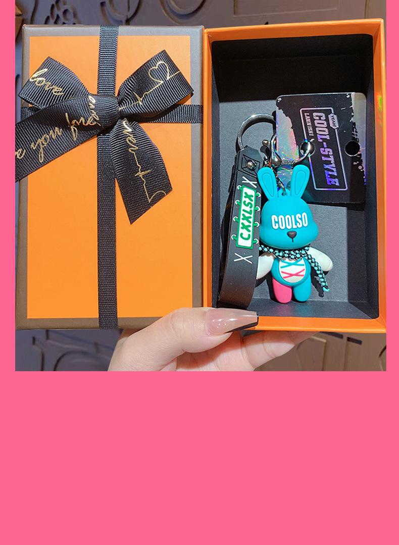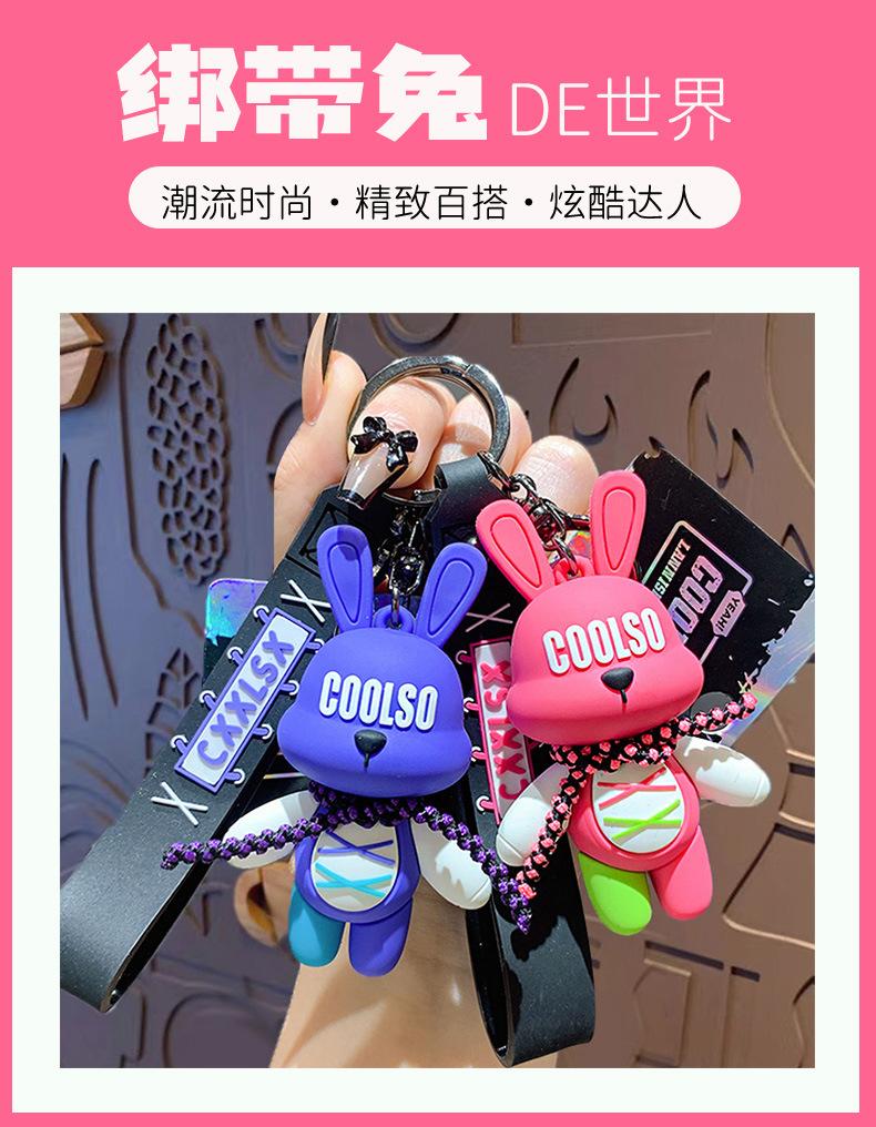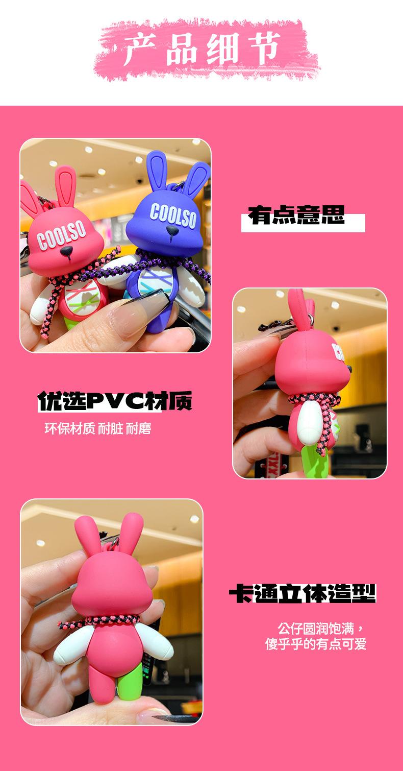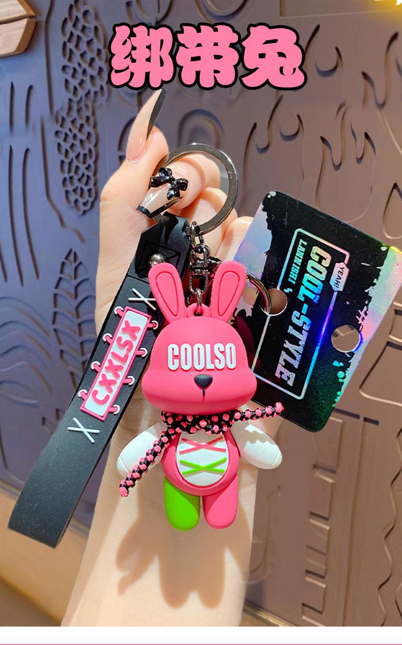 LLavero de conejo con correa de dibujos animados, colgante para pareja, bolso de escuela, exquisito llavero de coche, colgante, pequeño regalo al por mayor