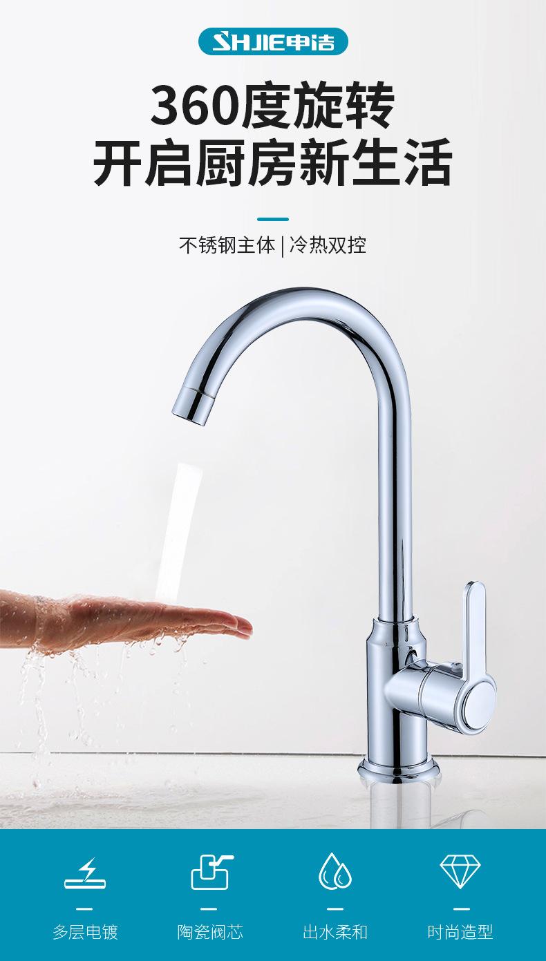 Grifo de Cocina para Fregadero, Frío y Caliente, Acero Inoxidable 304, Giratorio, Estilo Moderno