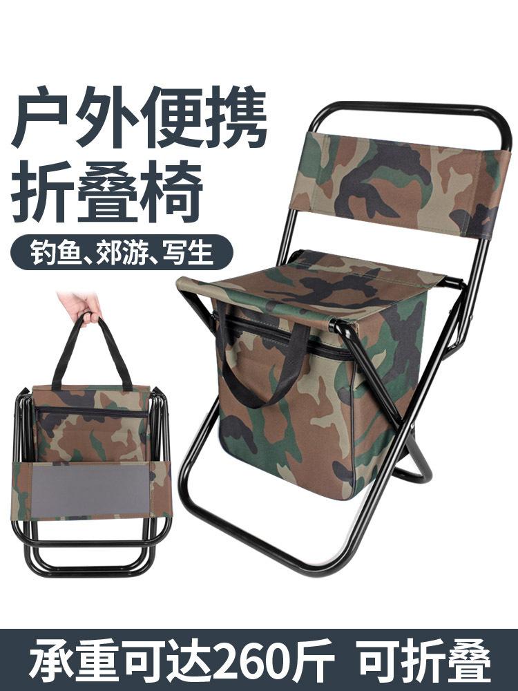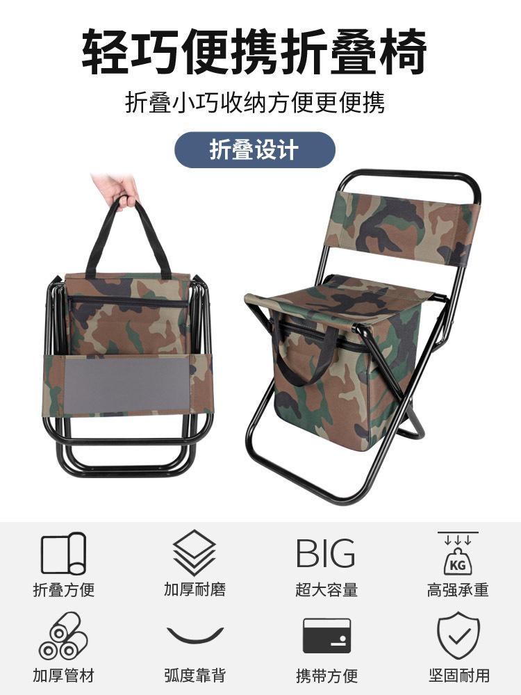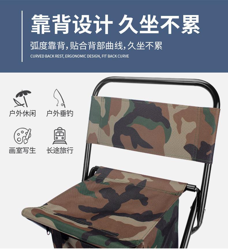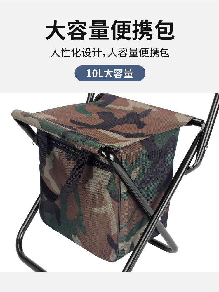 Amazon más vendido silla de pesca con respaldo de camuflaje para exteriores taburete multifunción portátil tubo de acero tela Oxford silla con bolsa de hielo
