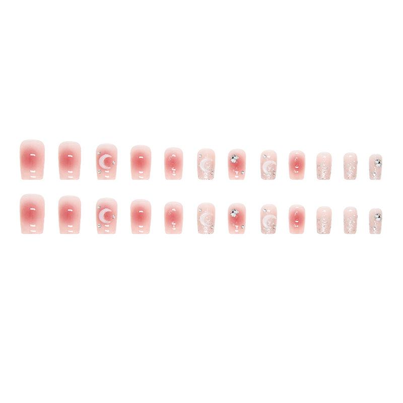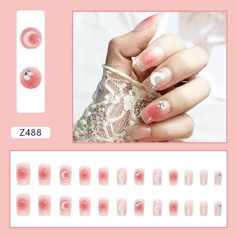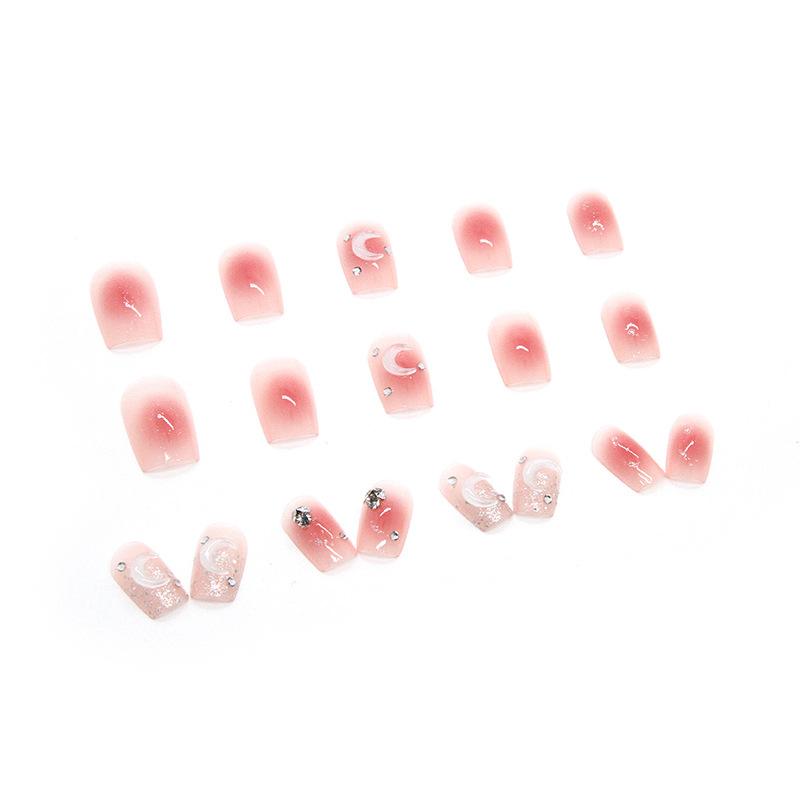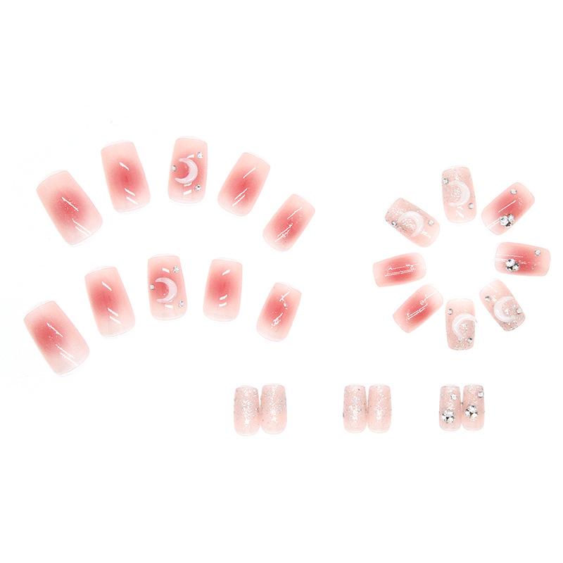 Belleza de uñas para niña rosa transparente rubor hielo luna usar uña linda suave estilo ins dulce uña postiza producto terminado 24 piezas
