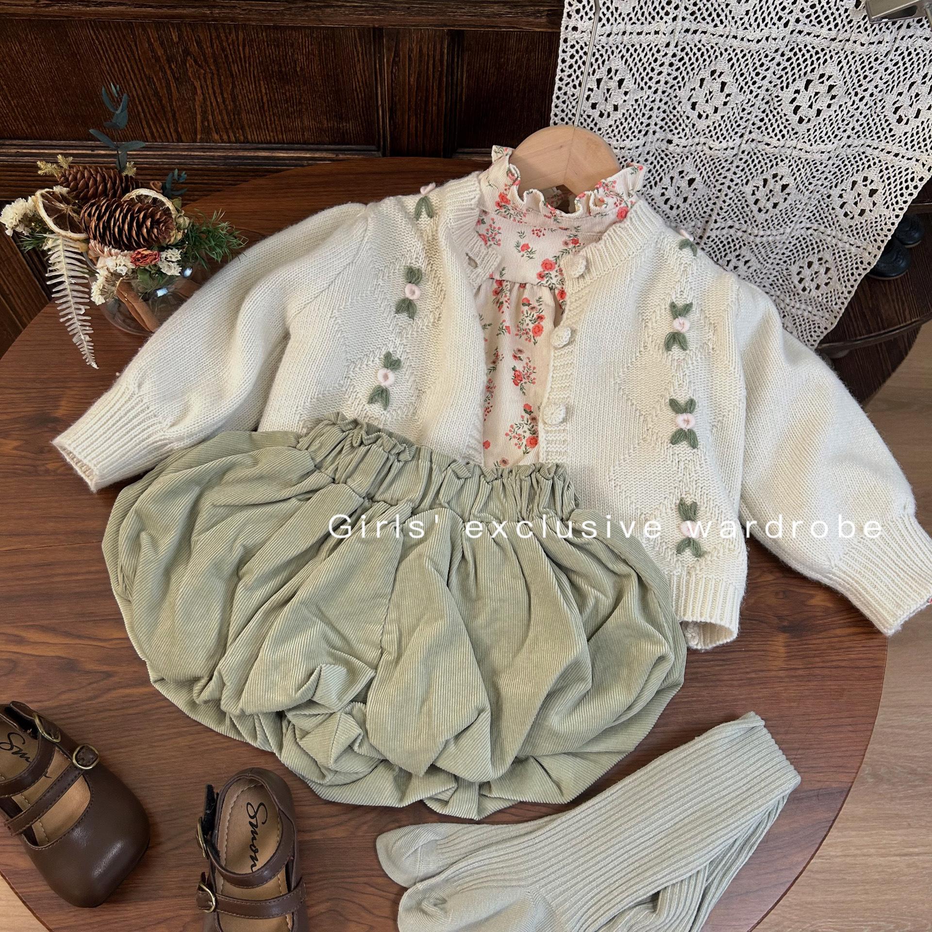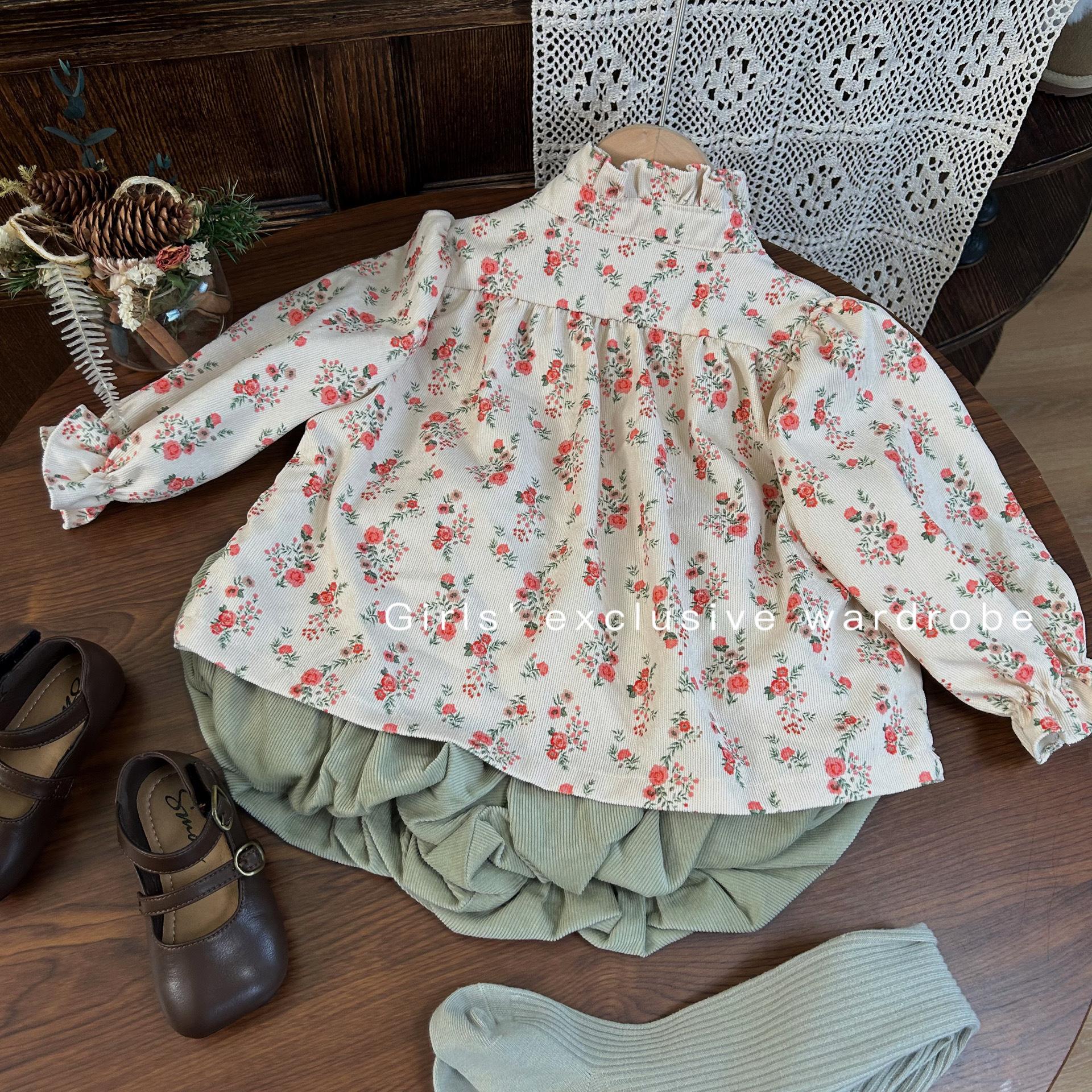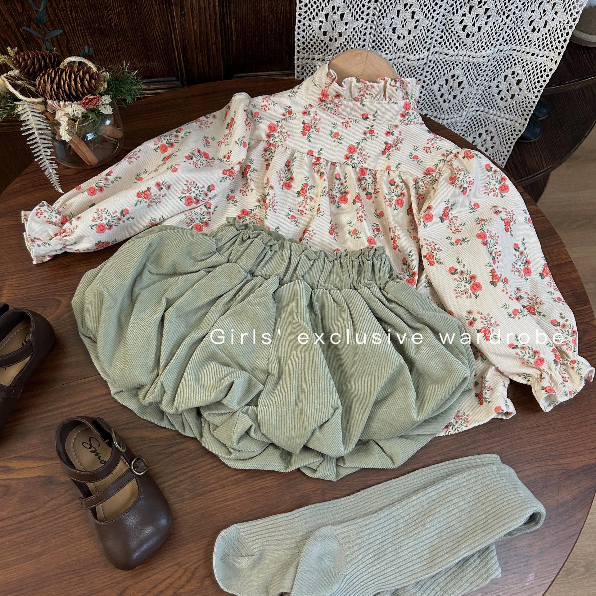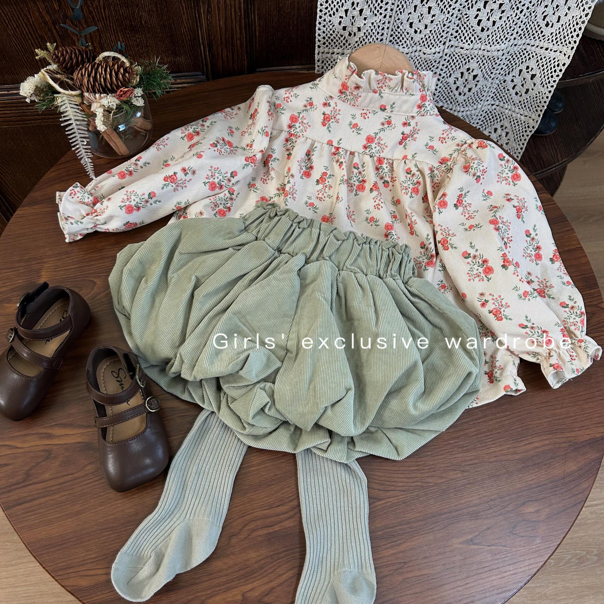 Gran Venta No Reembolsable y No Intercambiable [Orden Racionalidad] Camisa Floral de Cuello Alto para Niñas + Shorts Bud de Pana
