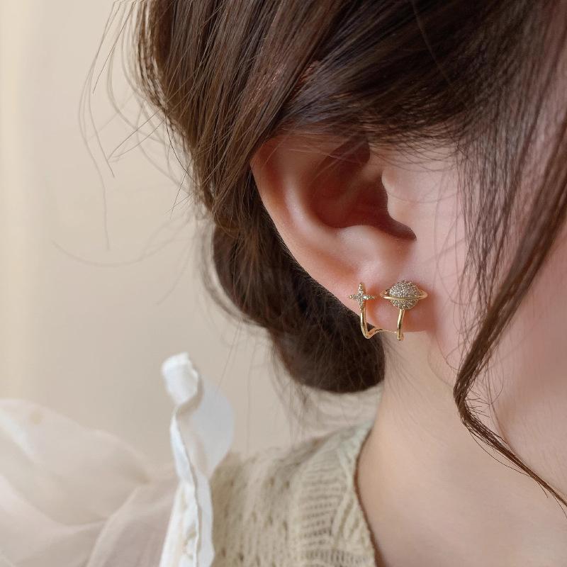 Pendientes pequeños, exquisitos y personalizados con forma de planeta, de nicho para mujer, de moda en línea, de diseño elegante, rojos, versátiles y de alta calidad.