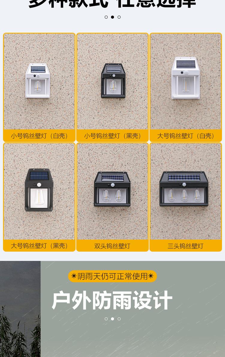 Compra Lámpara de pared solar para exteriores con inducción del cuerpo humano, lámpara de pared de alambre de tungsteno de tres modos, iluminación de luz nocturna impermeable para jardín y villa al por mayor en Joom.pro