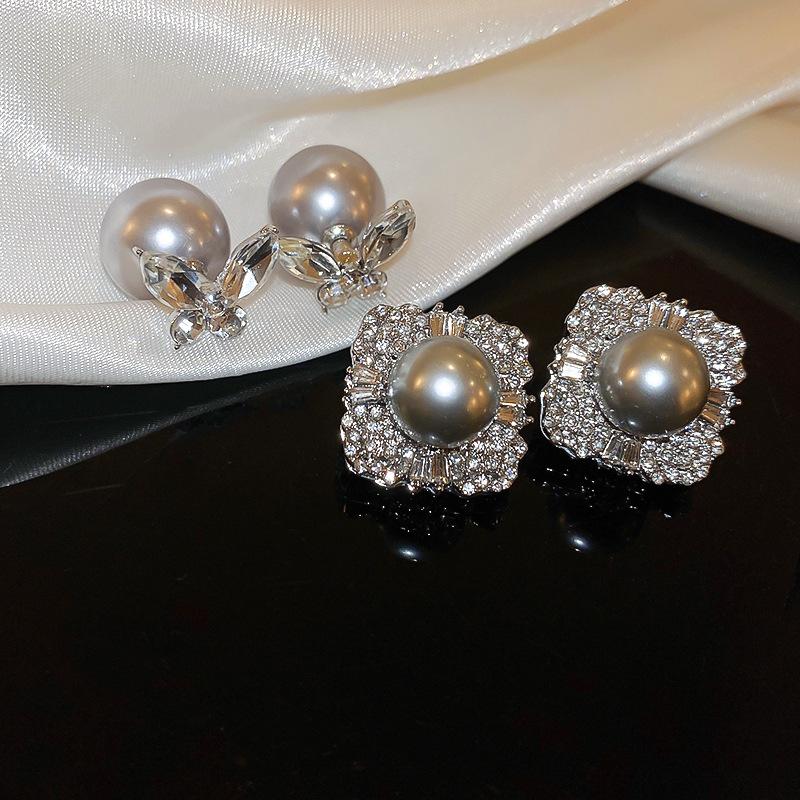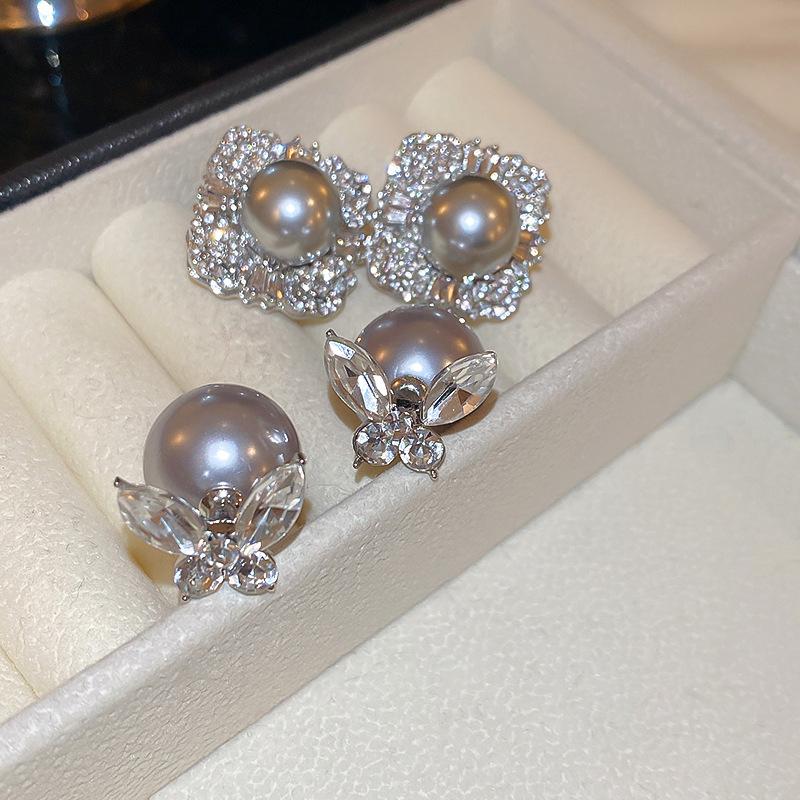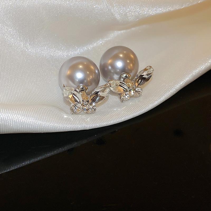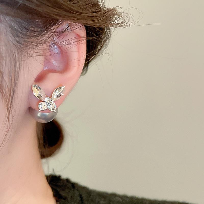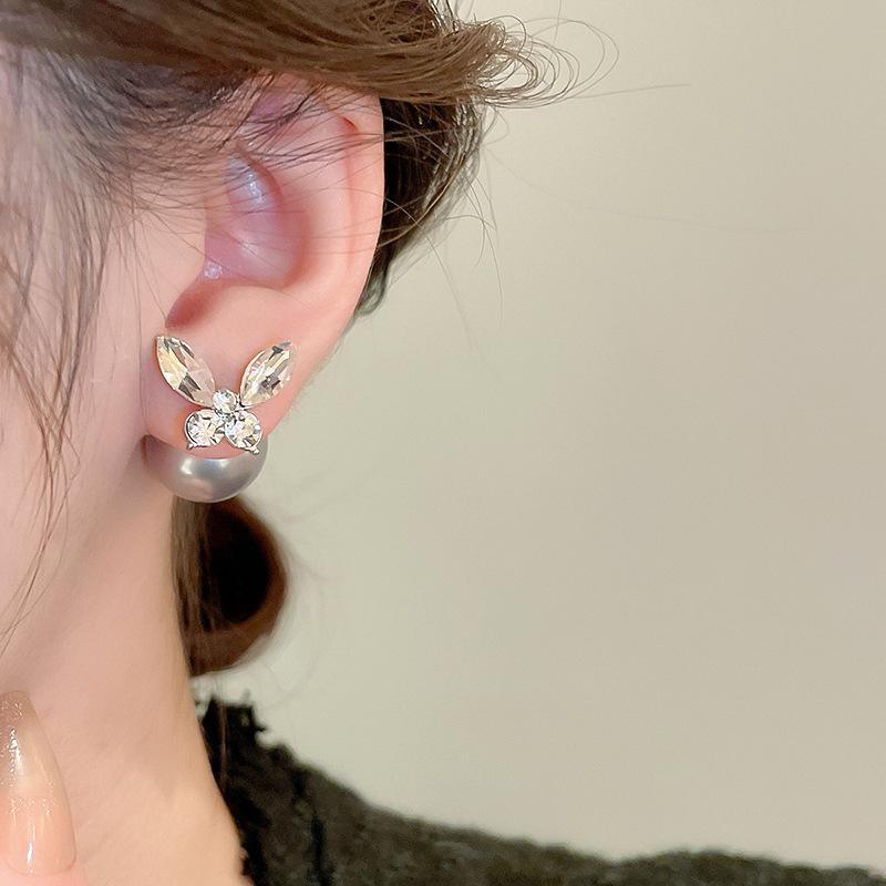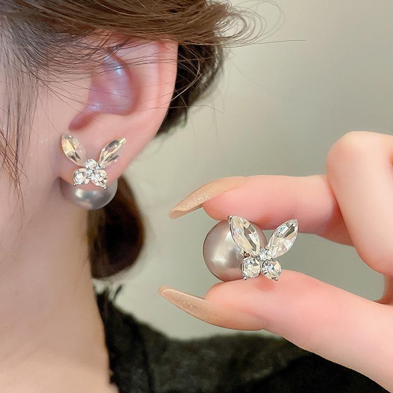 Pendientes de doble cara con forma de mariposa y perla de diamante con aguja de plata, pendientes sencillos de temperamento de alta calidad, pendientes de lujo ligeros de diseño francés para mujer