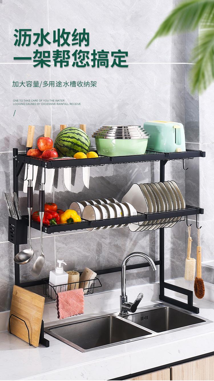 Escurridor de acero inoxidable de doble capa personalizado, para el hogar, para guardar cuencos y platos, multifuncional, para palillos y cucharas.