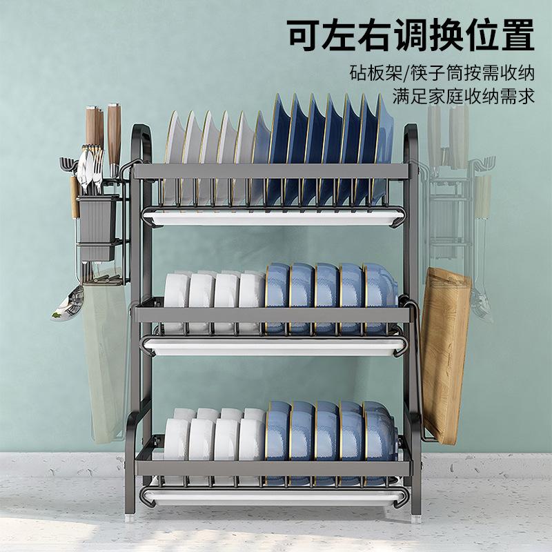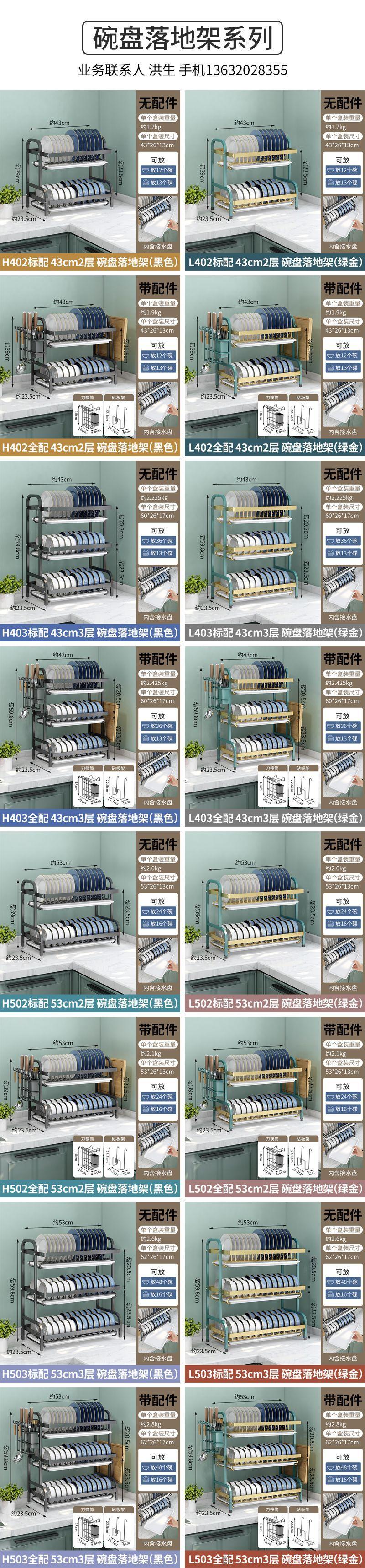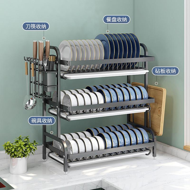 H403 fully equipped 43cm 3-layer bowl and plate floor rack (black)