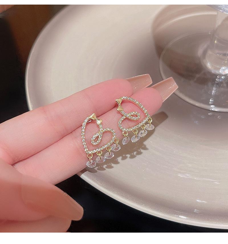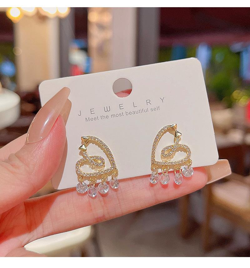 Pendientes de plata 925 con aguja, de lujo, con circonitas superbrillantes y doble corazón, tendencia femenina, nuevos pendientes coreanos versátiles con temperamento.