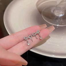 Pendientes de plata S925 con forma de aguja, de lujo, con lazo sencillo y ligero, para mujer, con microincrustaciones de circonitas, venta al por mayor.