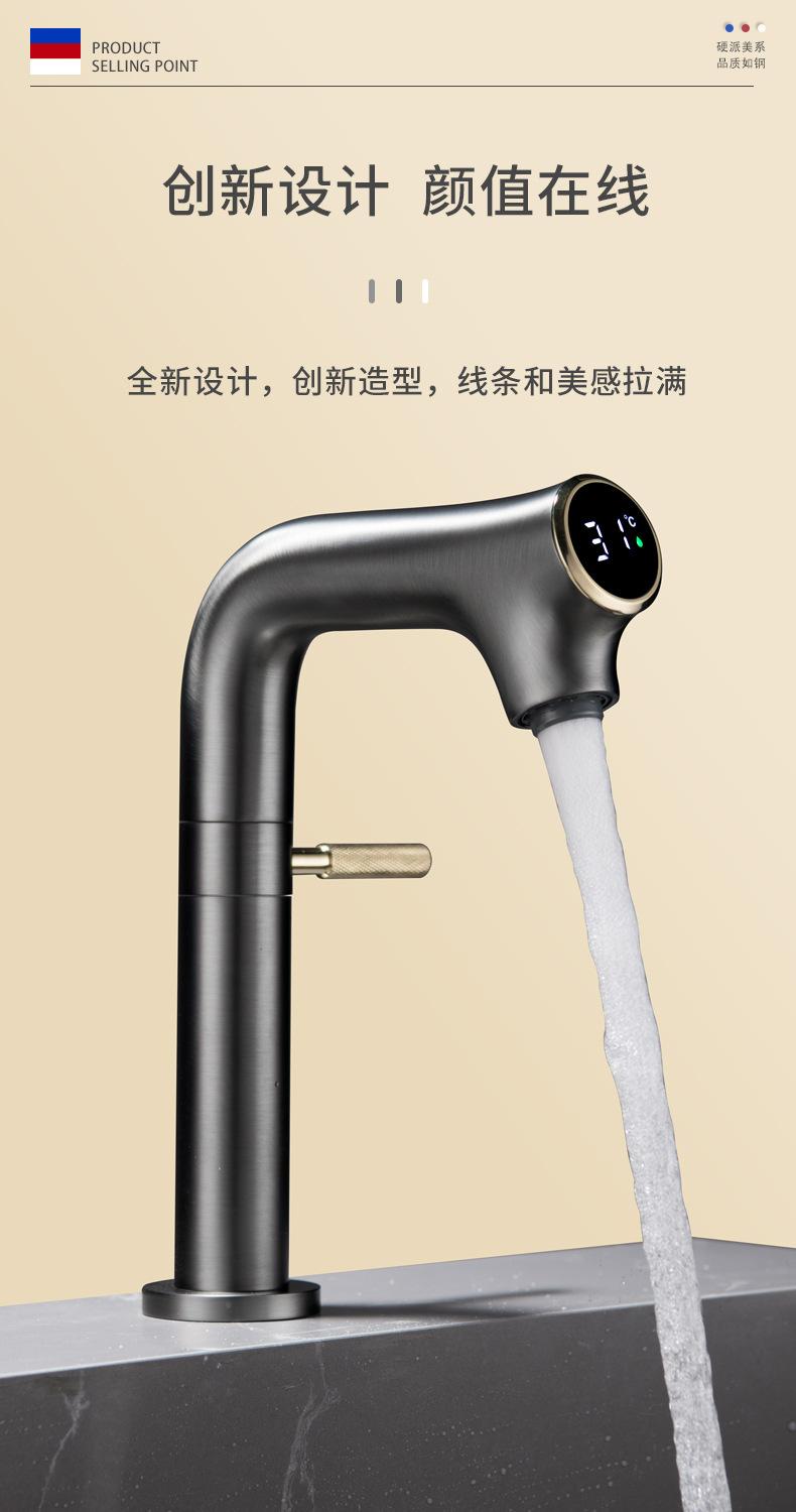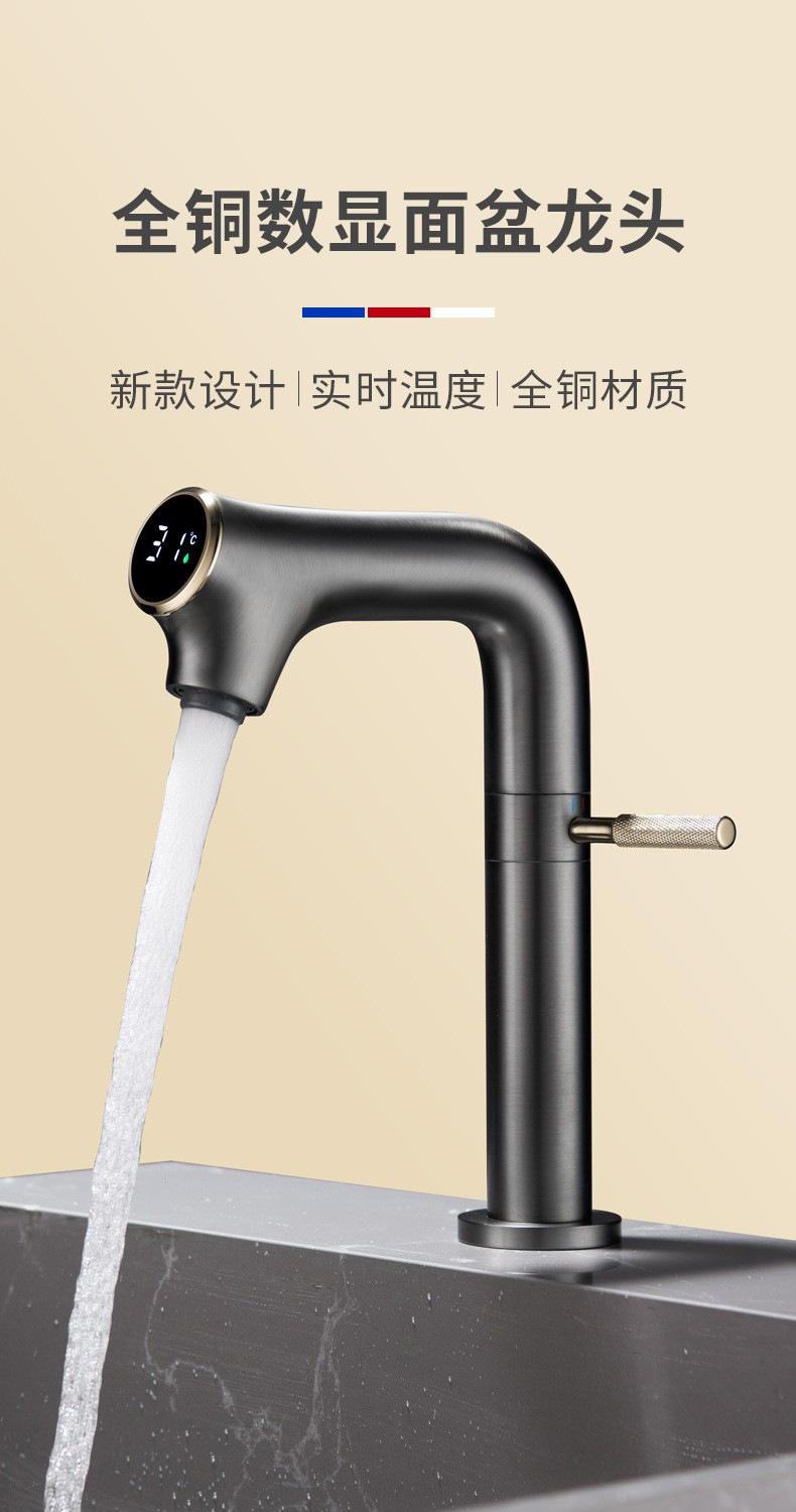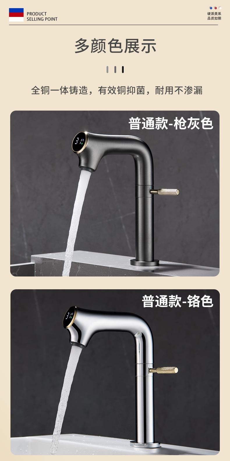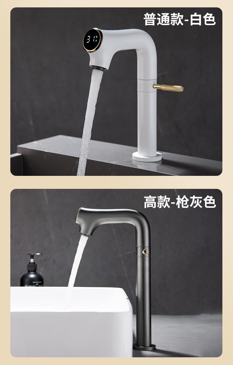 Grifo de lavabo con pantalla digital de cobre para baño de alta gama, grifo creativo para lavabo elevado a prueba de salpicaduras de agua fría y caliente para el hogar