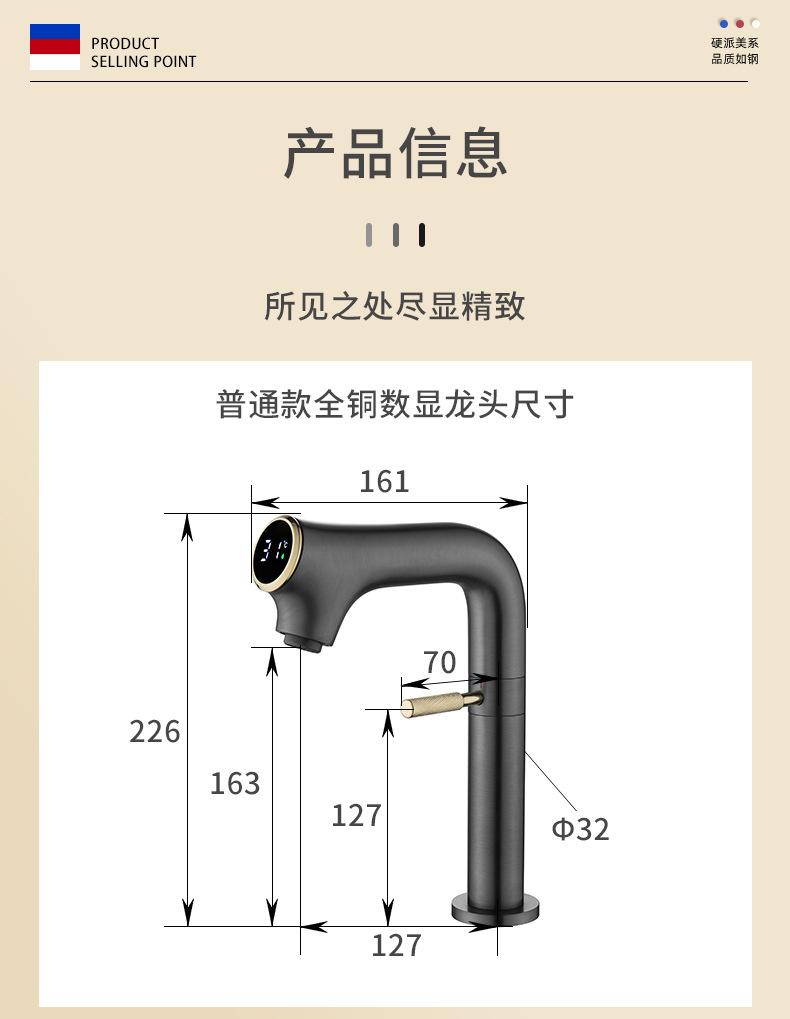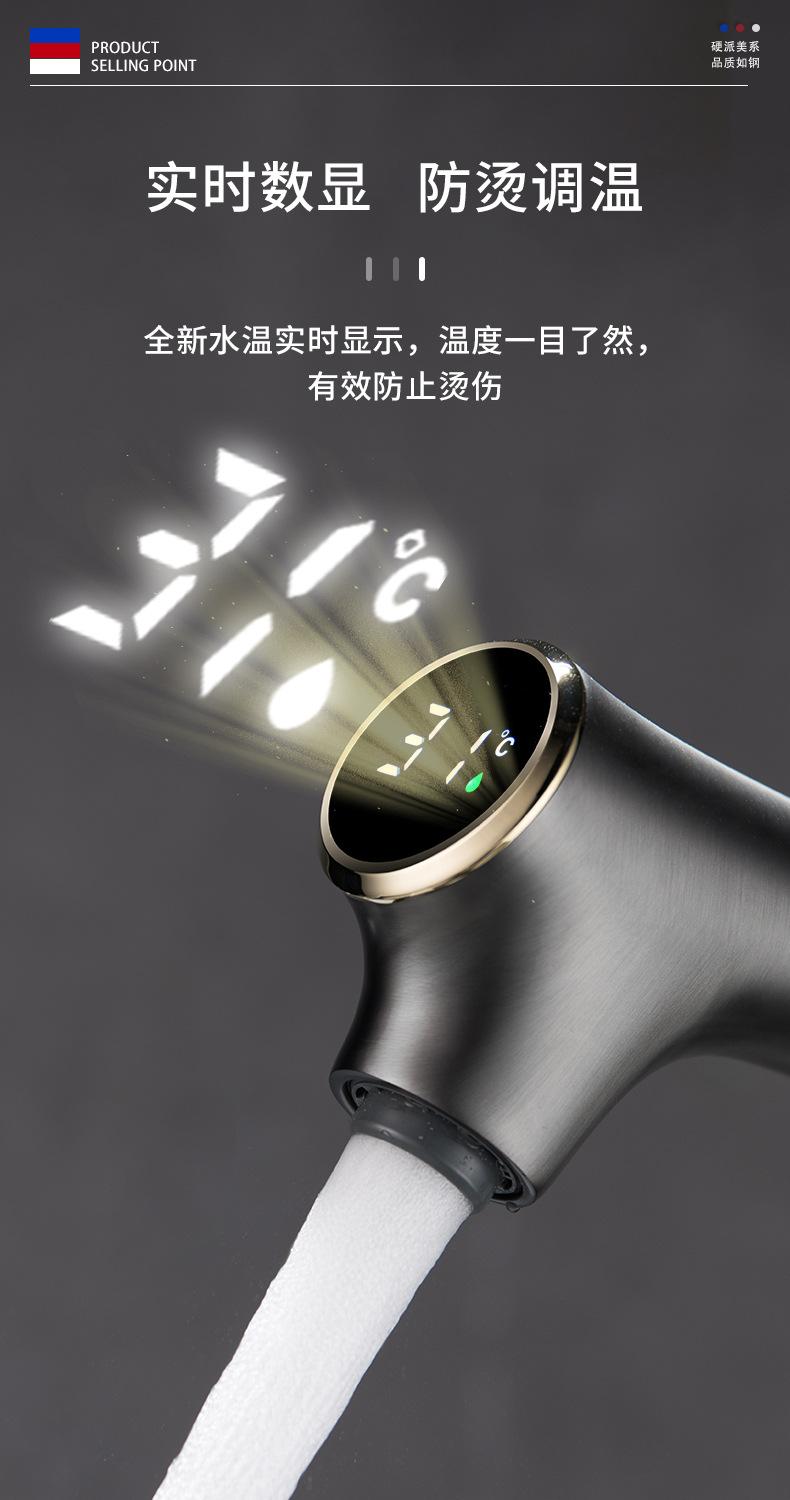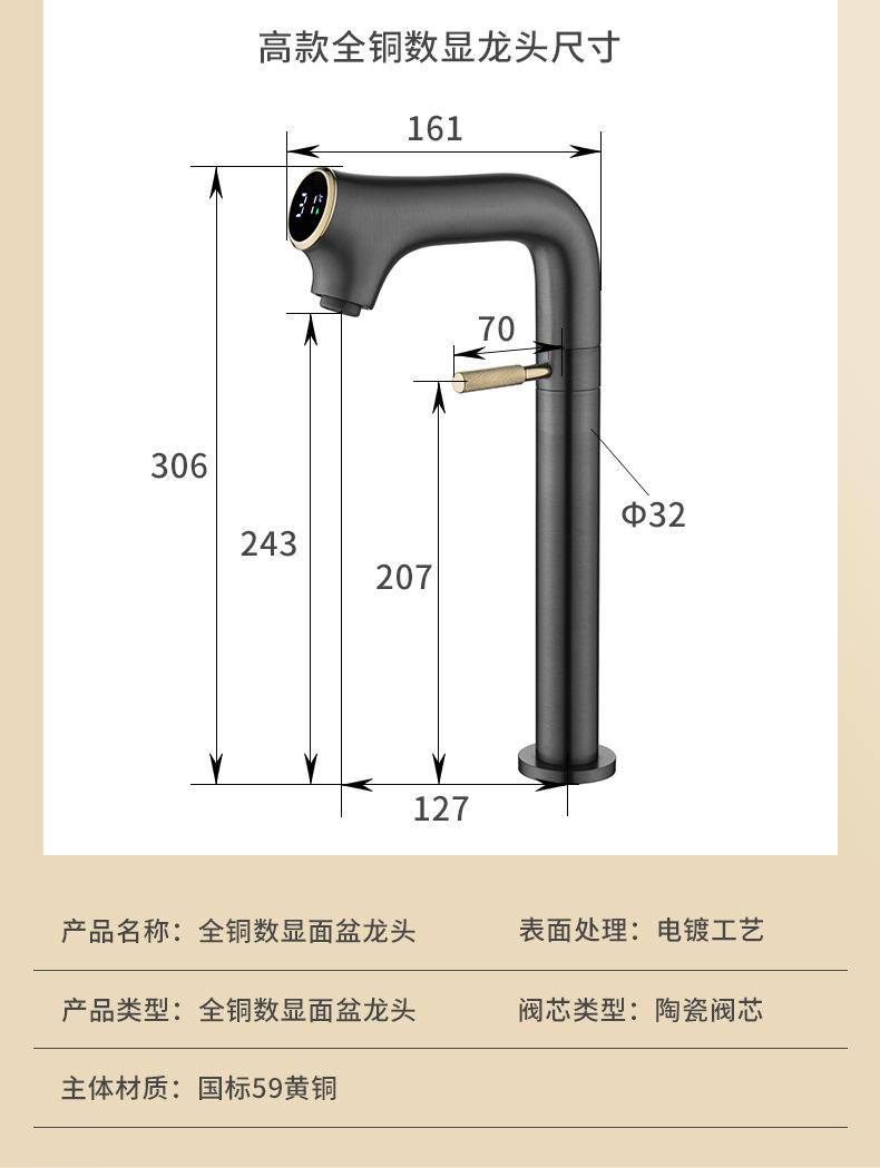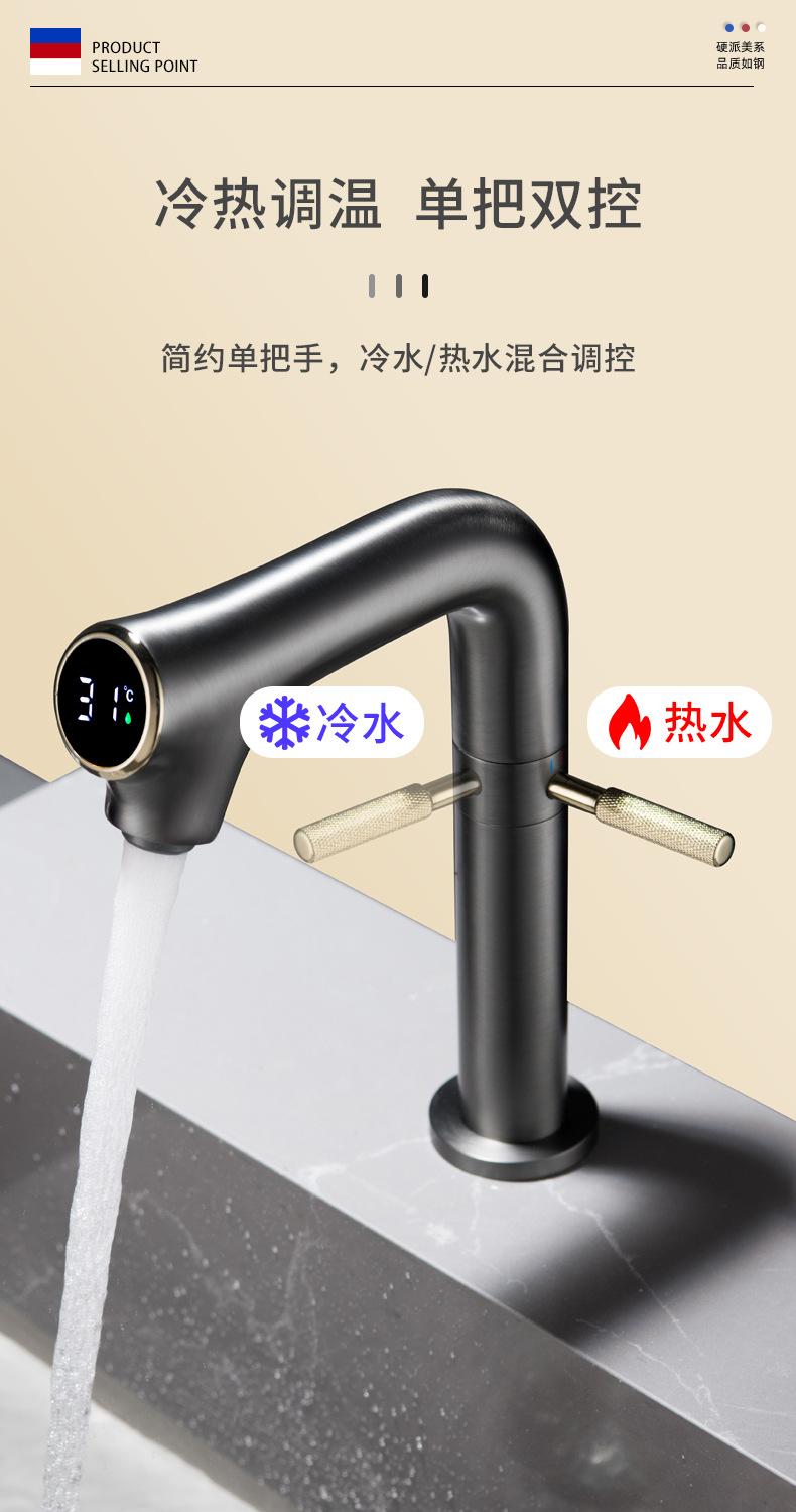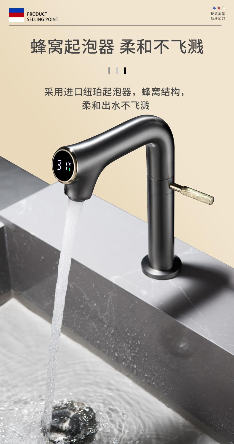 Grifo de lavabo con pantalla digital de cobre para baño de alta gama, grifo creativo para lavabo elevado a prueba de salpicaduras de agua fría y caliente para el hogar