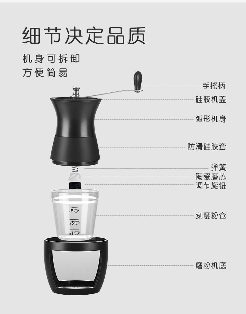 5) Finura de molienda ajustable Incluye: molinillo de café, caja de color