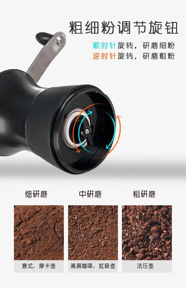 5) Finura de molienda ajustable incluye: molinillo de café, caja de color
