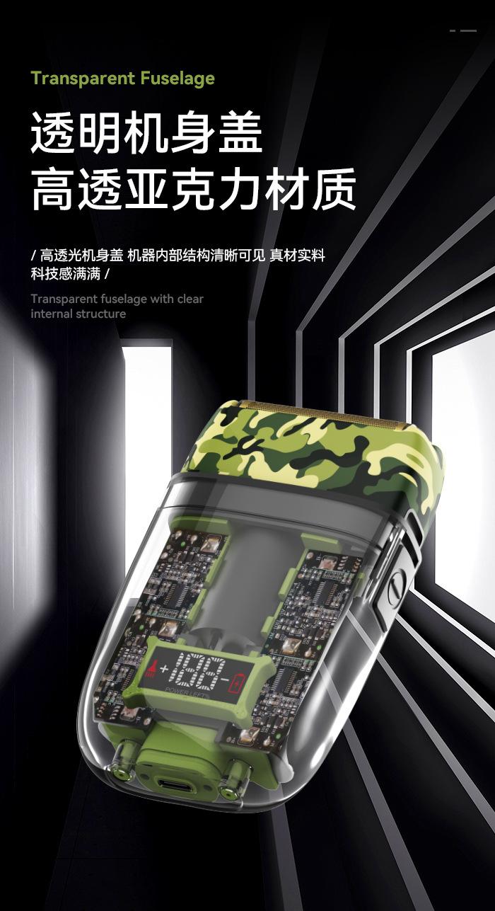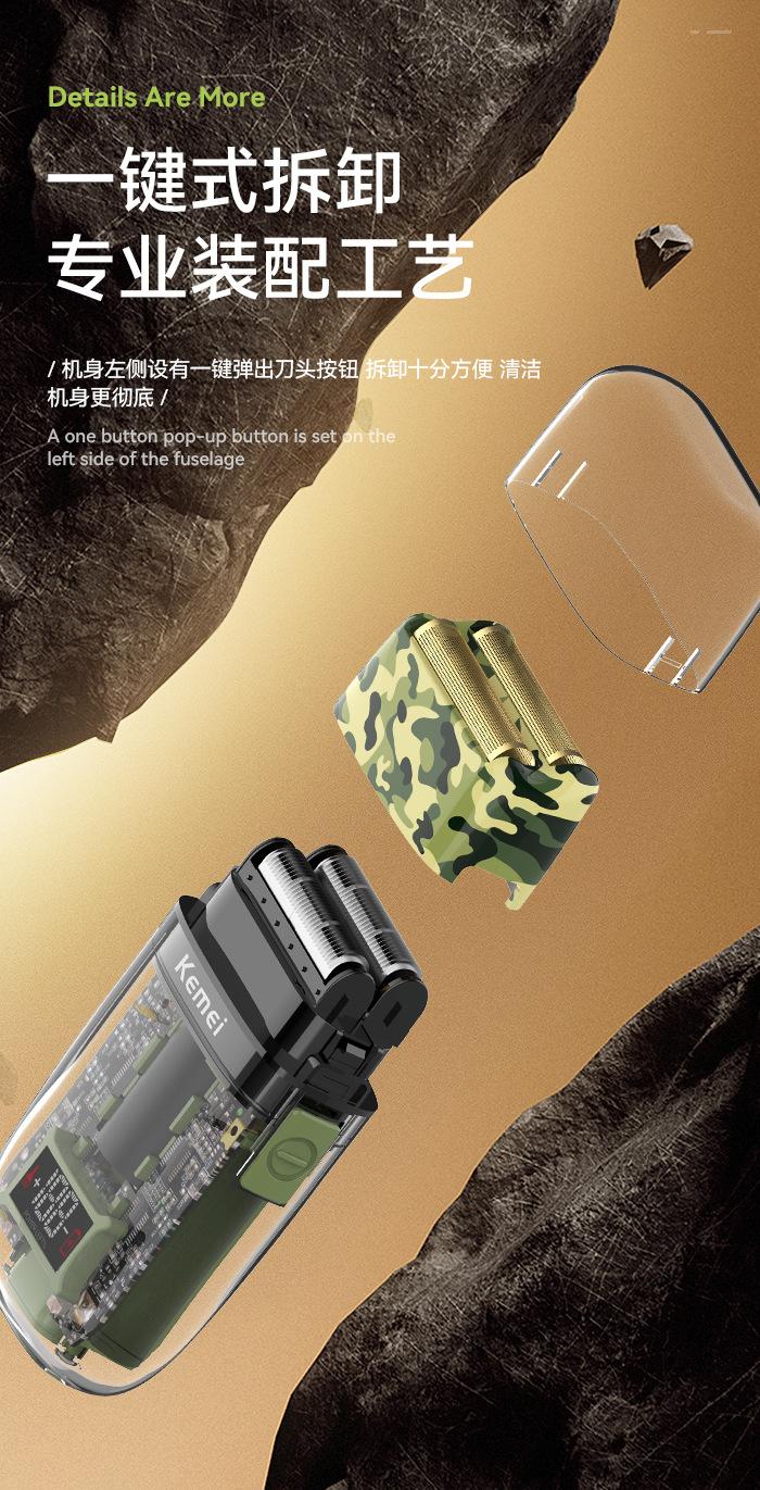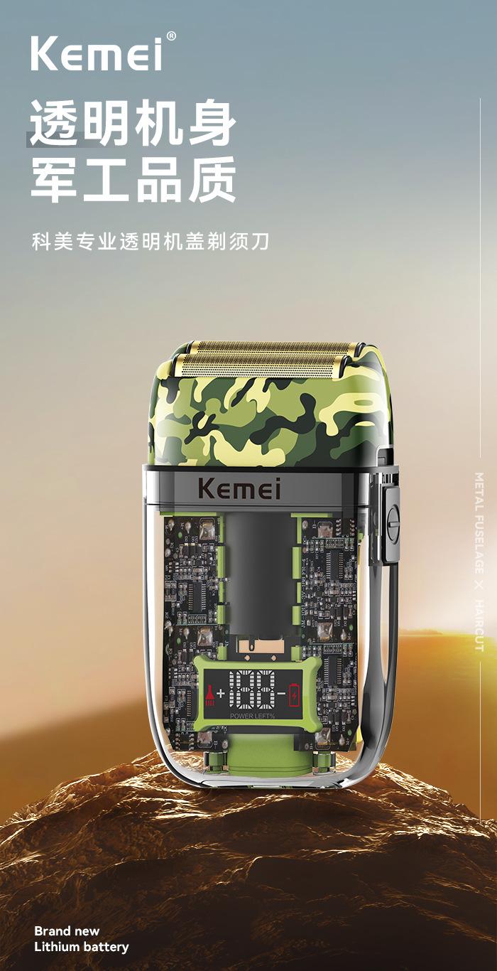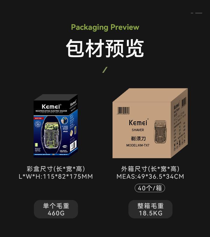 Kemei Afeitadora Eléctrica Km-Tx7 Transparente Impermeable Afeitadora Recíproca Recargable por USB Afeitadora de Barba Portátil