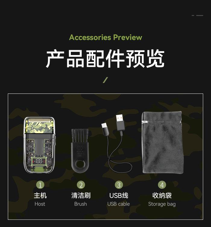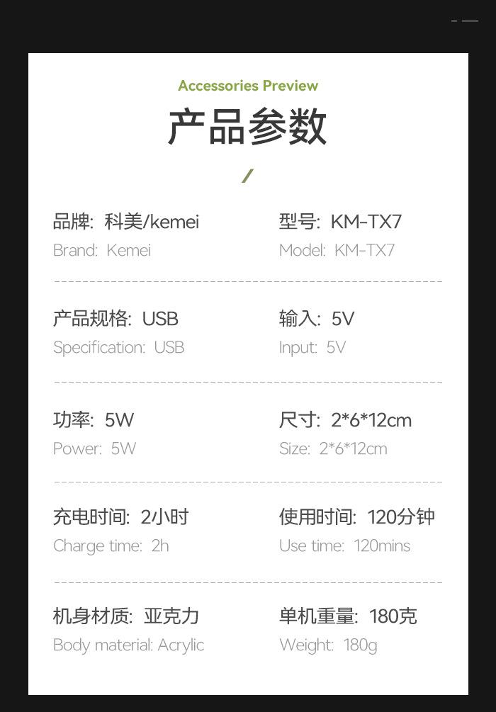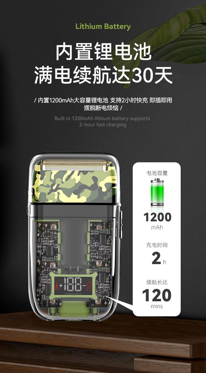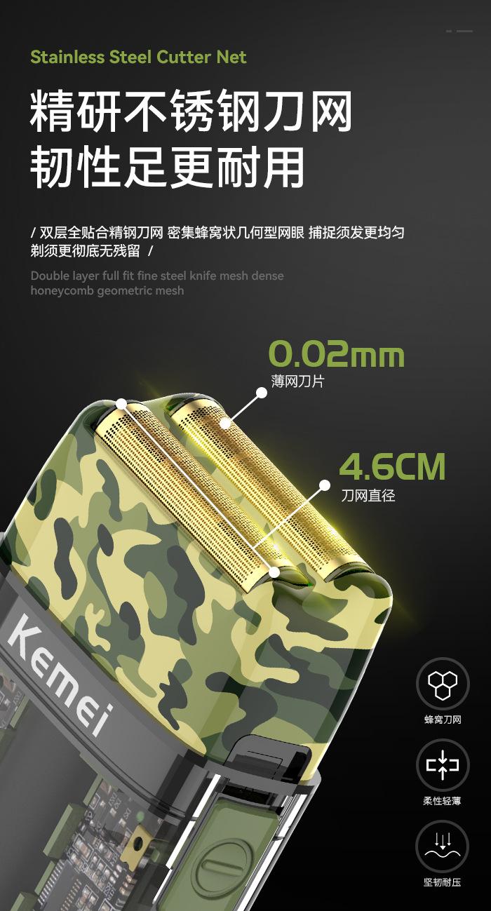 Kemei Afeitadora Eléctrica Km-Tx7 Transparente Impermeable Afeitadora Recíproca Recargable por USB Afeitadora de Barba Portátil