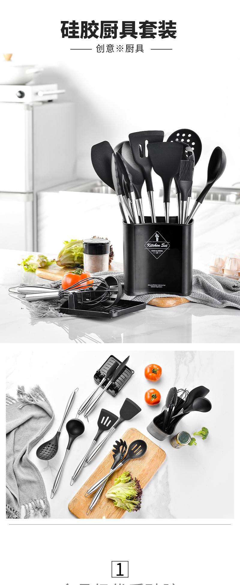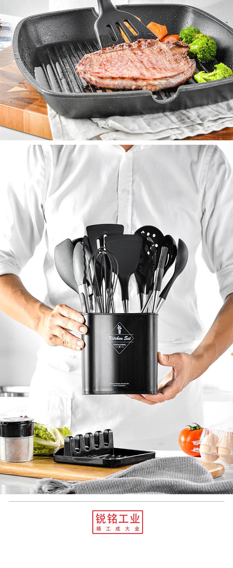 Juego de utensilios de cocina de silicona de barril cuadrado grande con mango hueco, 12 piezas, sartén antiadherente, pala, cuchara, juego de herramientas de cocina
