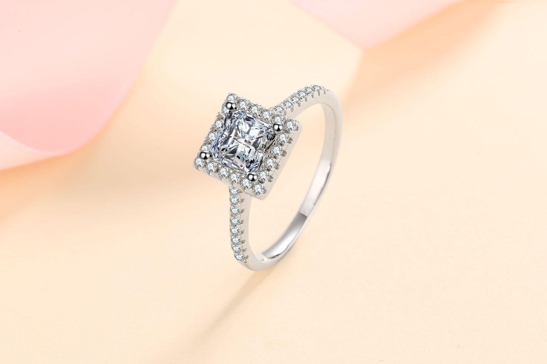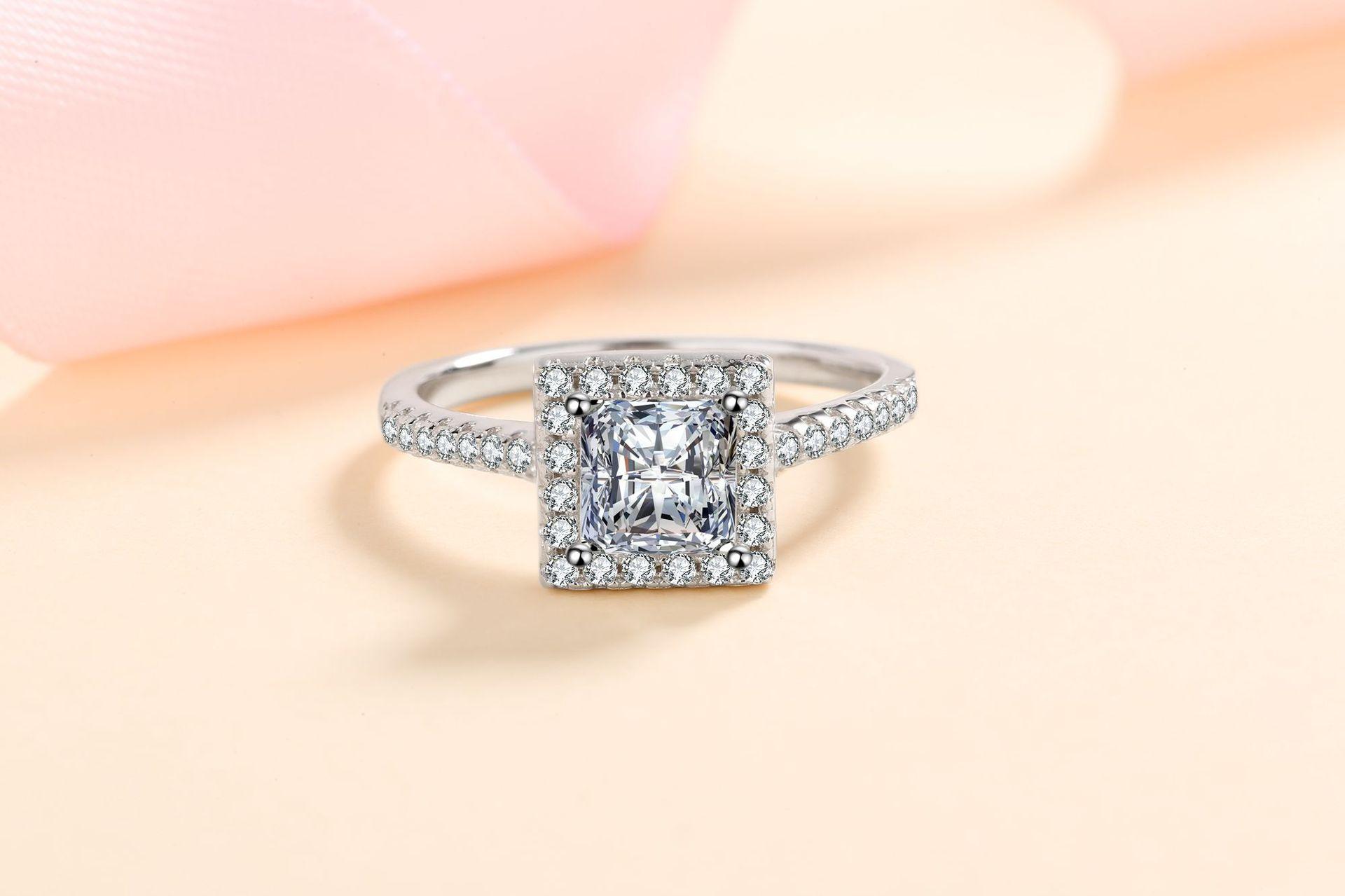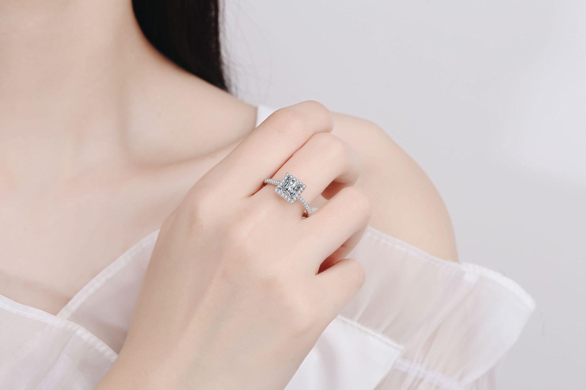 XDY Nuevo anillo de plata pura 925 para niños Princesa Bolsa cuadrada Anillo de moissanita de 1 quilate Pequeño libro rojo Suministro directo de fabricantes