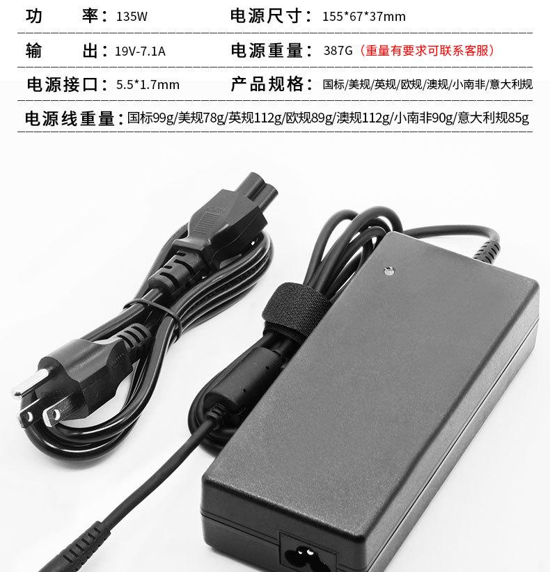 Aplicable a portátil Acer Acer 135W Adaptador de corriente 19V-7.1A Puerto amarillo de 5.5 * 1.7 mm