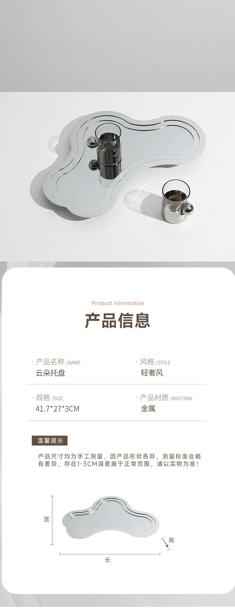 Bandeja de nube de metal galvanizado de estilo europeo moderno, mesa de comedor, mesa de centro, bandeja de almacenamiento, adornos de lujo ligeros de diseñador