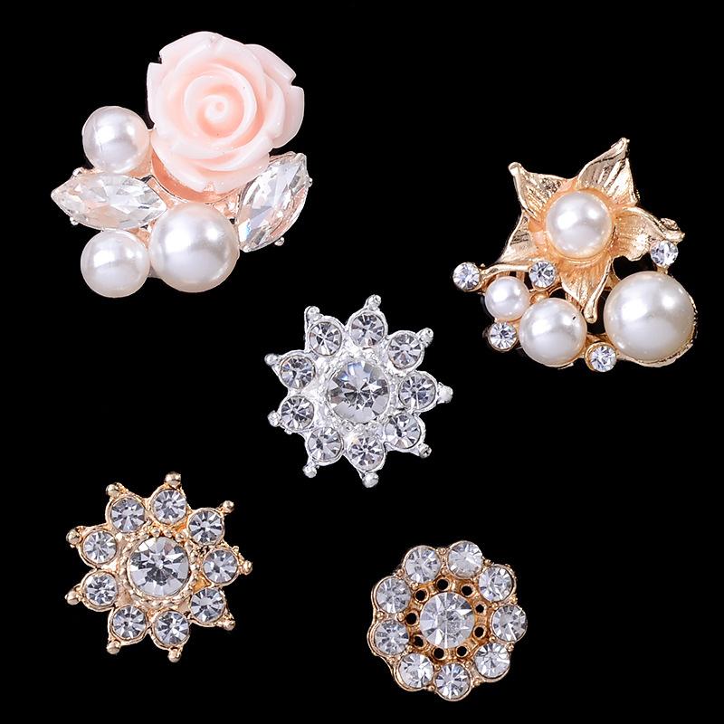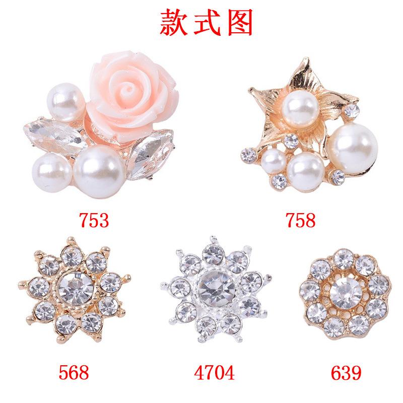Plato de Flor Perla Rosa Hebilla Diamante Accesorios de Aleación Galvanizada Lleno de Diamantes Materiales para Joyería Hecha a Mano DIY Venta al Por Mayor