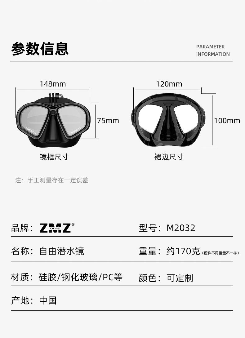Gafas de buceo libre lentes miopía espejo de buceo soporte para cámara espejo de snorkel de silicona equipo de snorkel