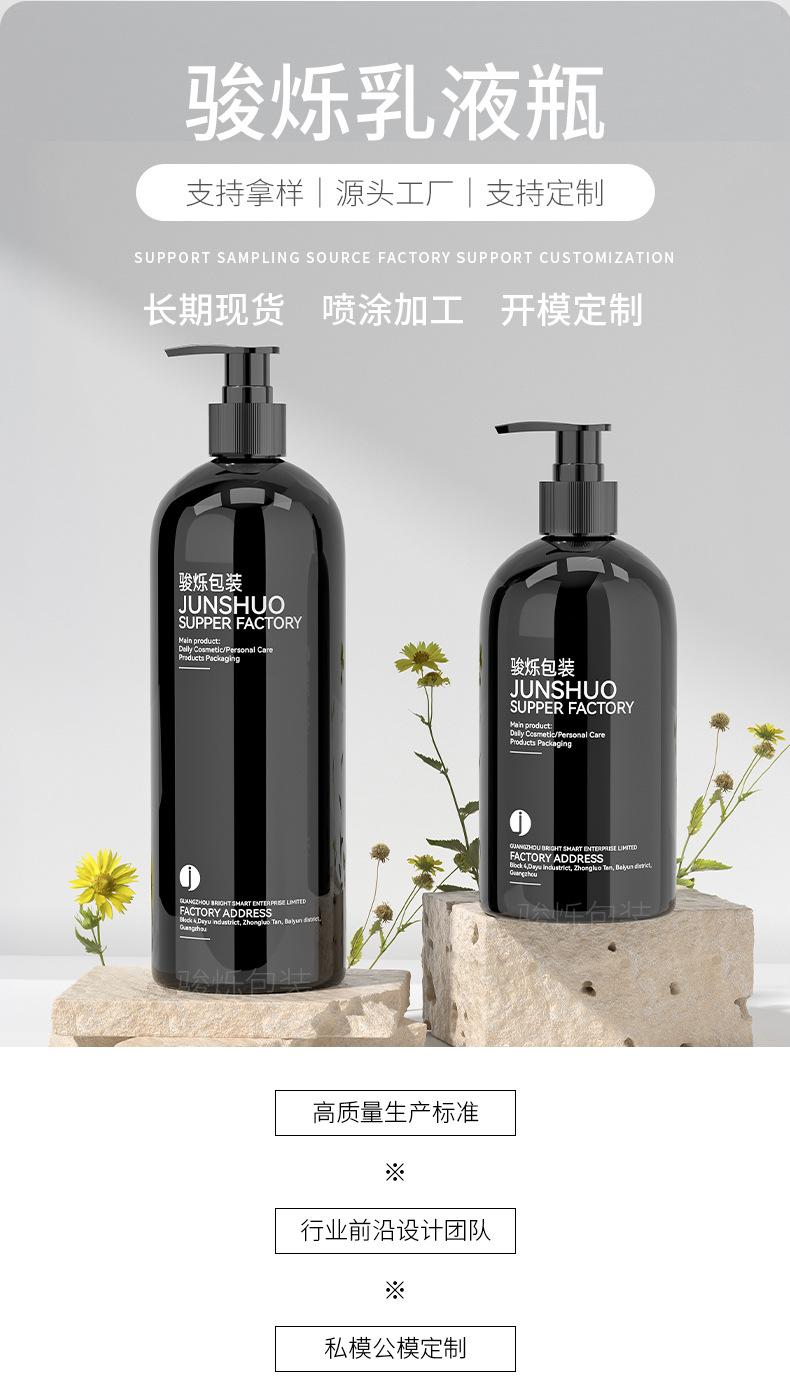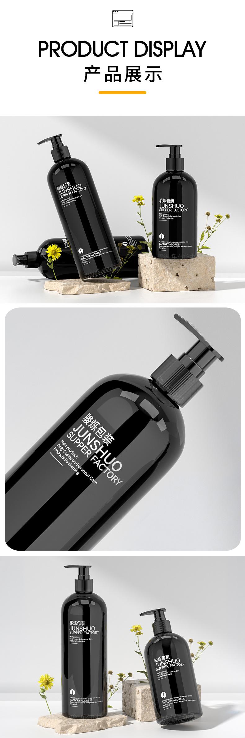 Compra Botella de champú transparente negro de hombros redondos de 300 ml al por mayor 500 ml botella de plástico PET personalizada para gel de ducha al por mayor en Joom.pro