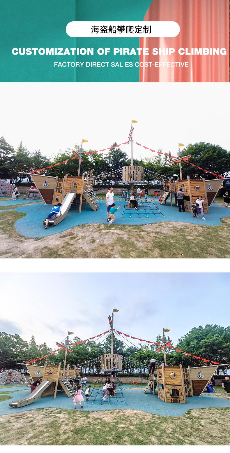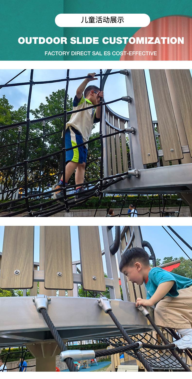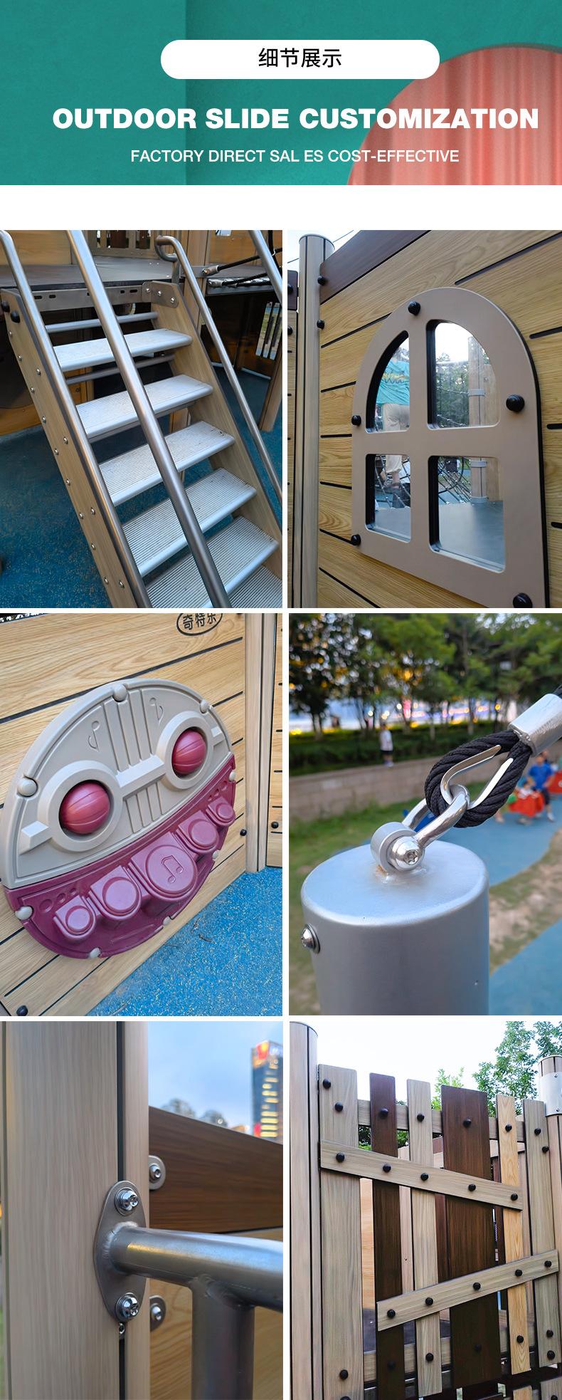 Casa de madera con tobogán de acero inoxidable para jardín de infantes, instalaciones de entretenimiento para interiores y exteriores, gran marco de escalada combinado para la comunidad
