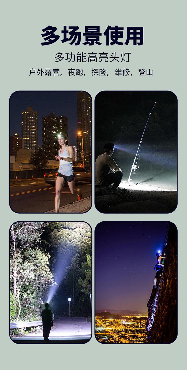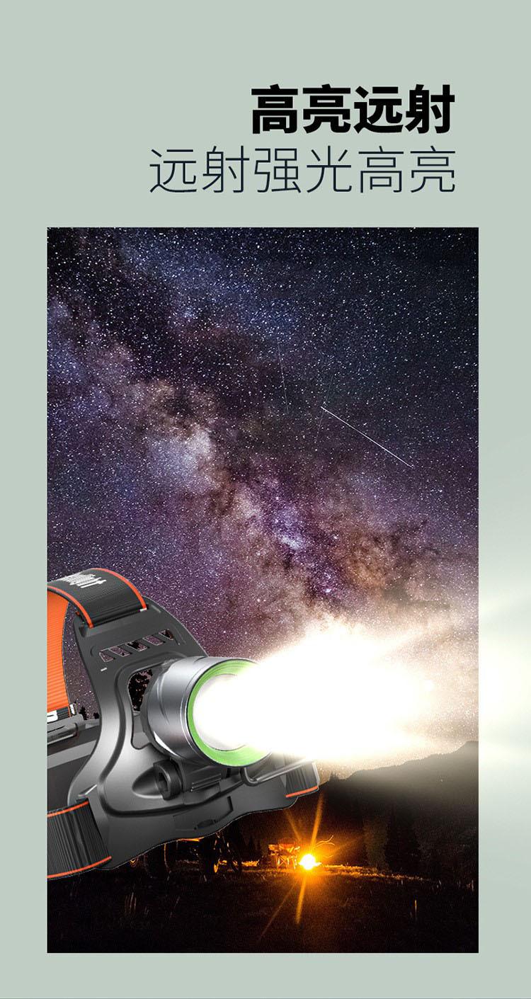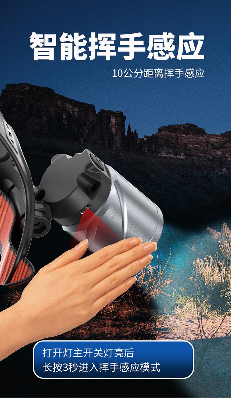 Faro Exterior de Cabeza con Sensor Lateral Recargable Zoom Largo Alcance Iluminación de Aventura para Ciclismo Nocturno Luz LED Portátil