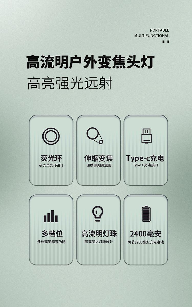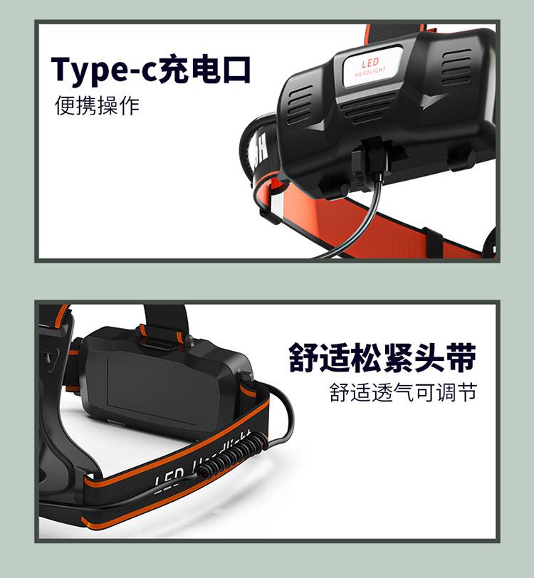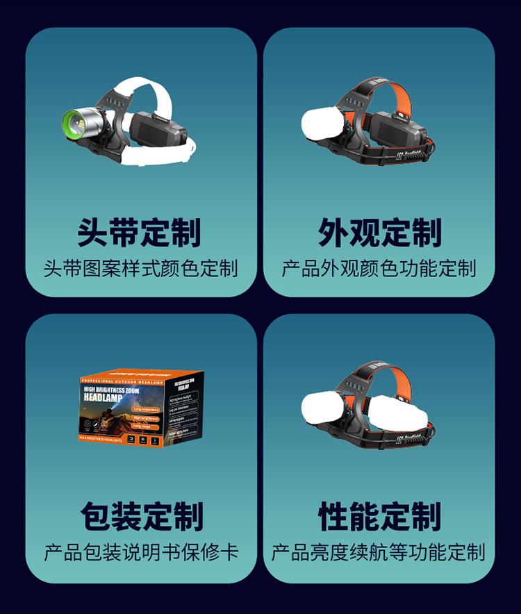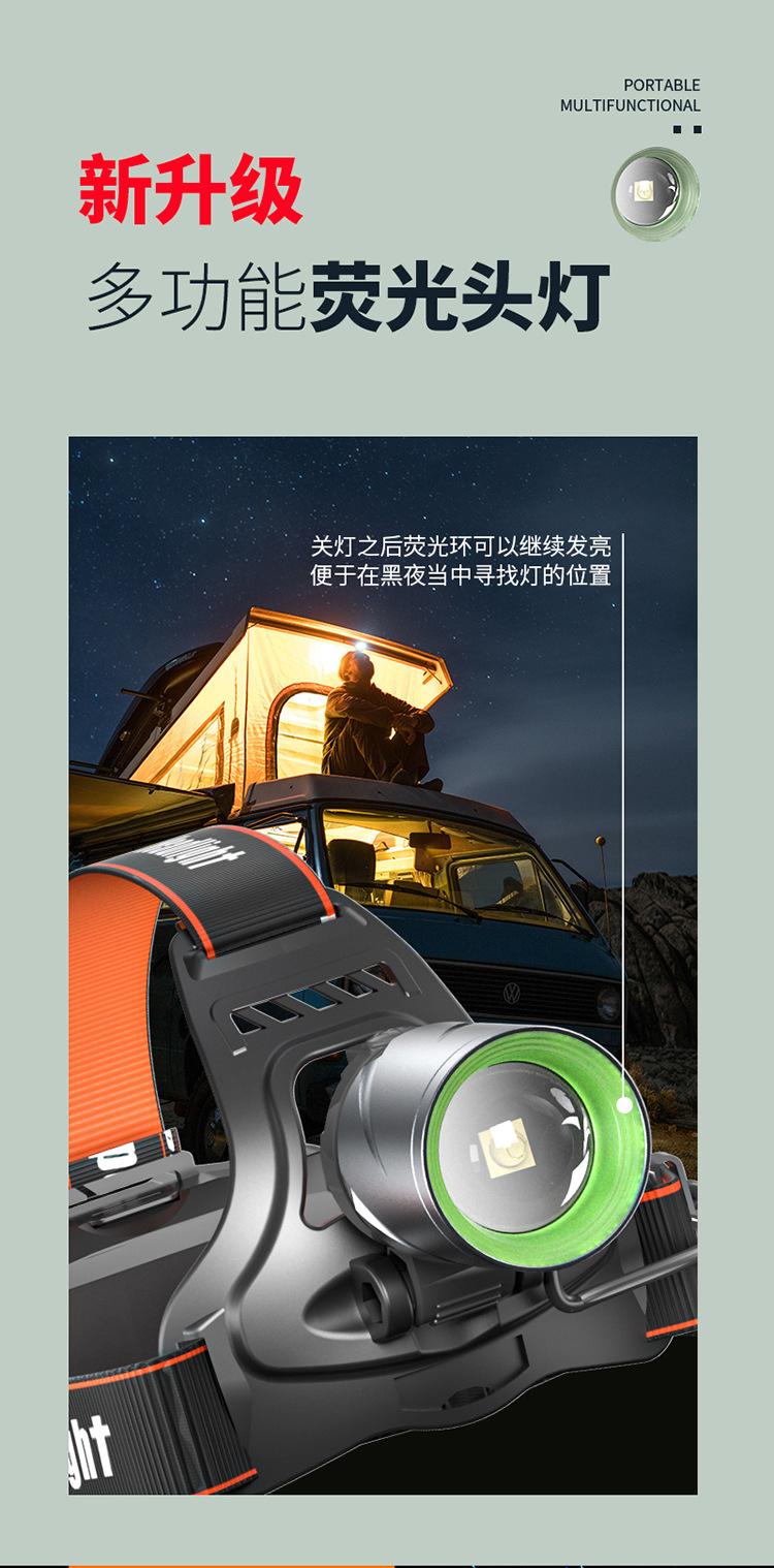Faro Exterior de Cabeza con Sensor Lateral Recargable Zoom Largo Alcance Iluminación de Aventura para Ciclismo Nocturno Luz LED Portátil