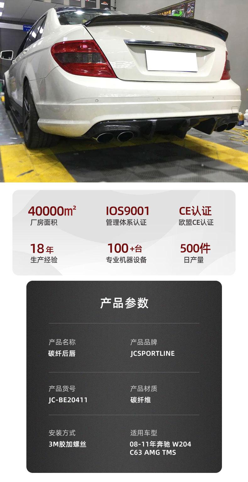Aplicable a 08-11 Mercedes-Benz W204 C63 AMG TMS fibra de carbono labio trasero modificación Mercedes-Benz spoiler inferior trasero