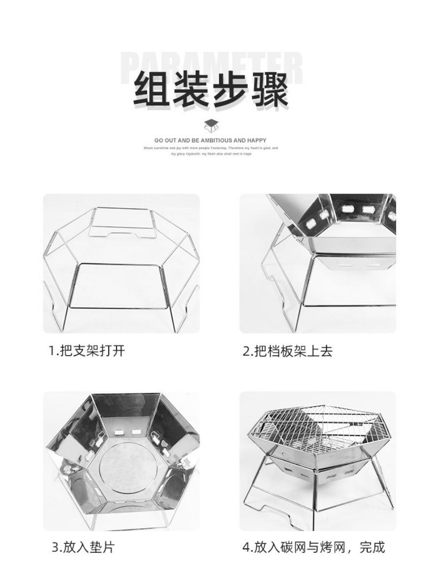 Nombre del producto: Mesa de fuego plegable hexagonal estufa para barbacoa