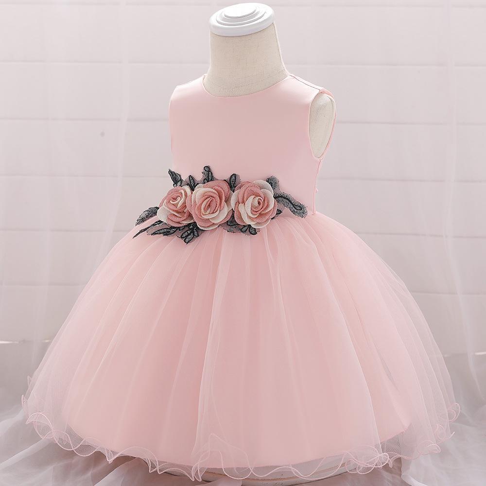 Vestido de princesa infantil de comercio exterior, nuevo, para fiesta de primer cumpleaños de bebé, vestido con corpiño tridimensional