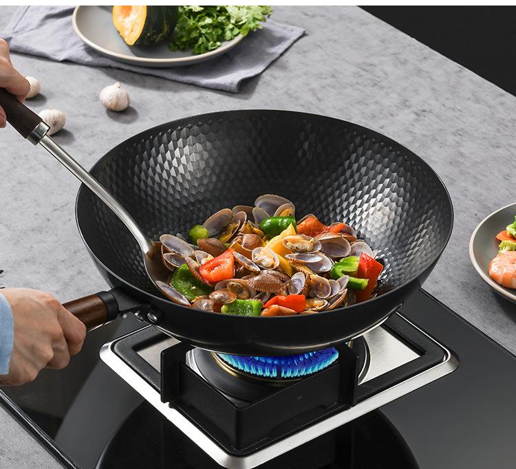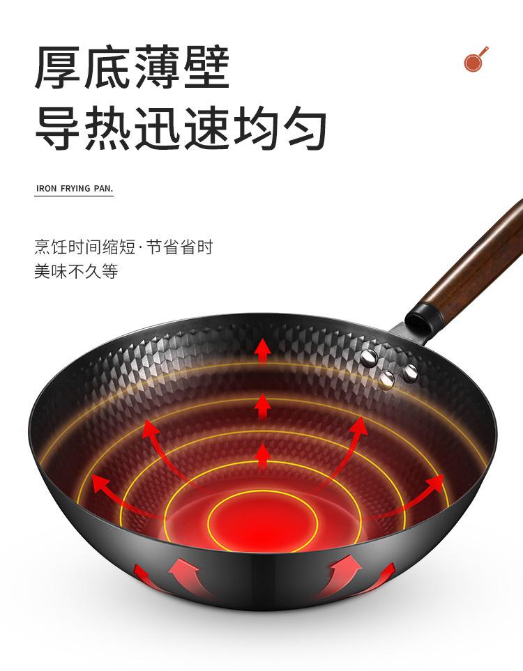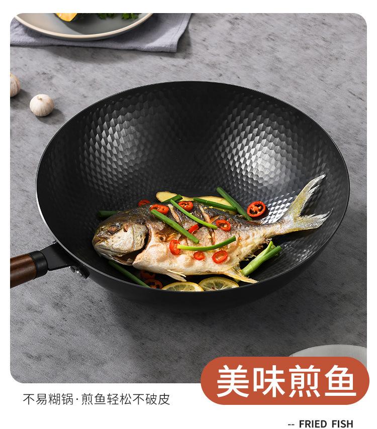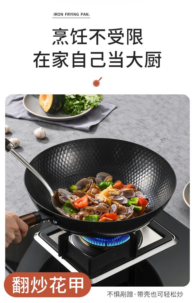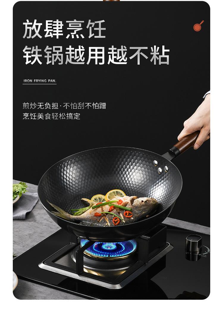 Compra Wok de fondo plano Sartén antiadherente sin recubrimiento Sartén de hierro antigua Wok para el hogar Sartén antiadherente Especial para cocina de inducción Estufa de gas al por mayor en Joom.pro