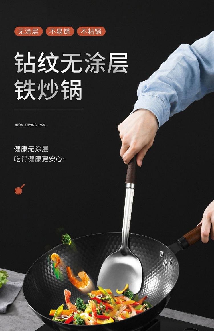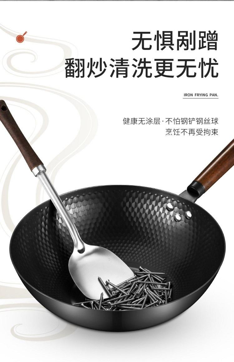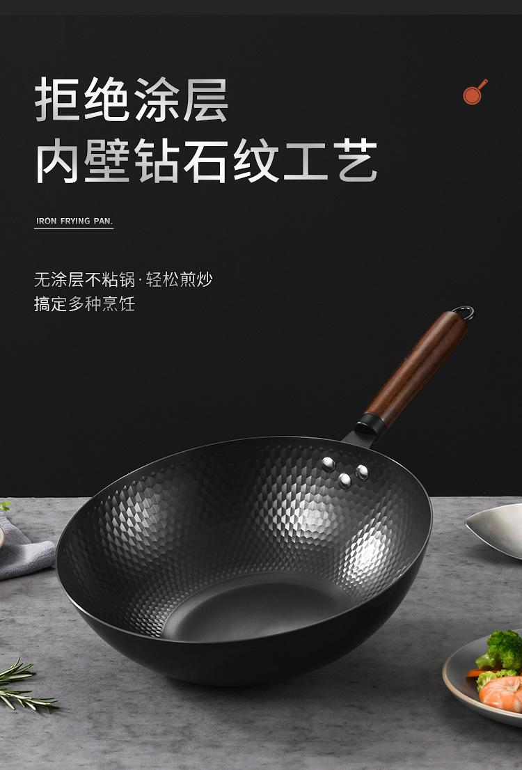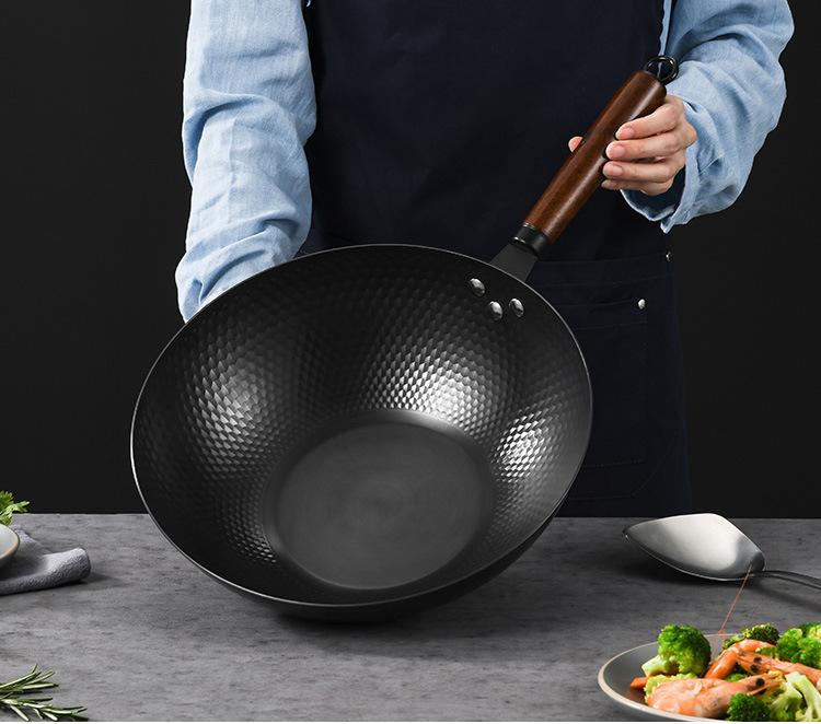Compra Wok de fondo plano Sartén antiadherente sin recubrimiento Sartén de hierro antigua Wok para el hogar Sartén antiadherente Especial para cocina de inducción Estufa de gas al por mayor en Joom.pro