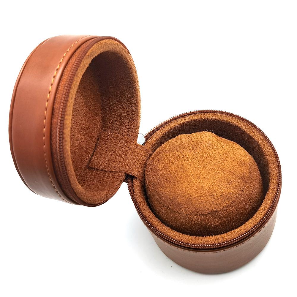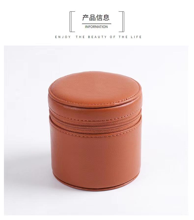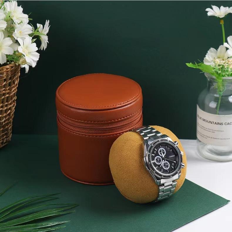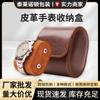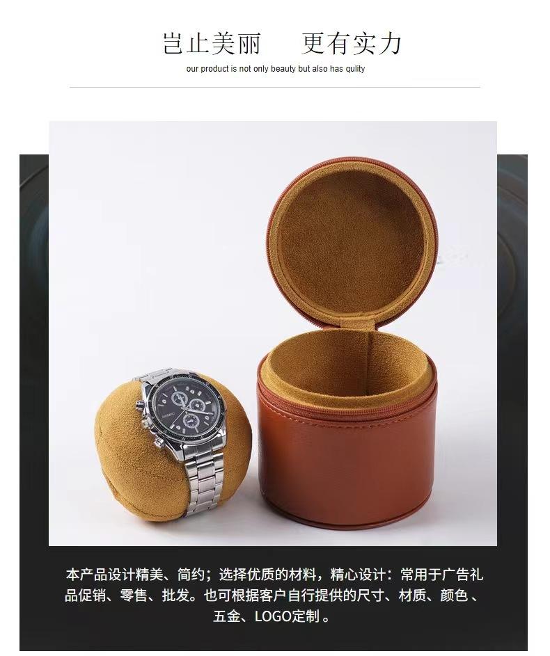 Caja de reloj pequeña redonda de una pieza de fábrica, cuero, cremallera, portátil para exteriores, caja de almacenamiento para reloj de pareja, personalización
