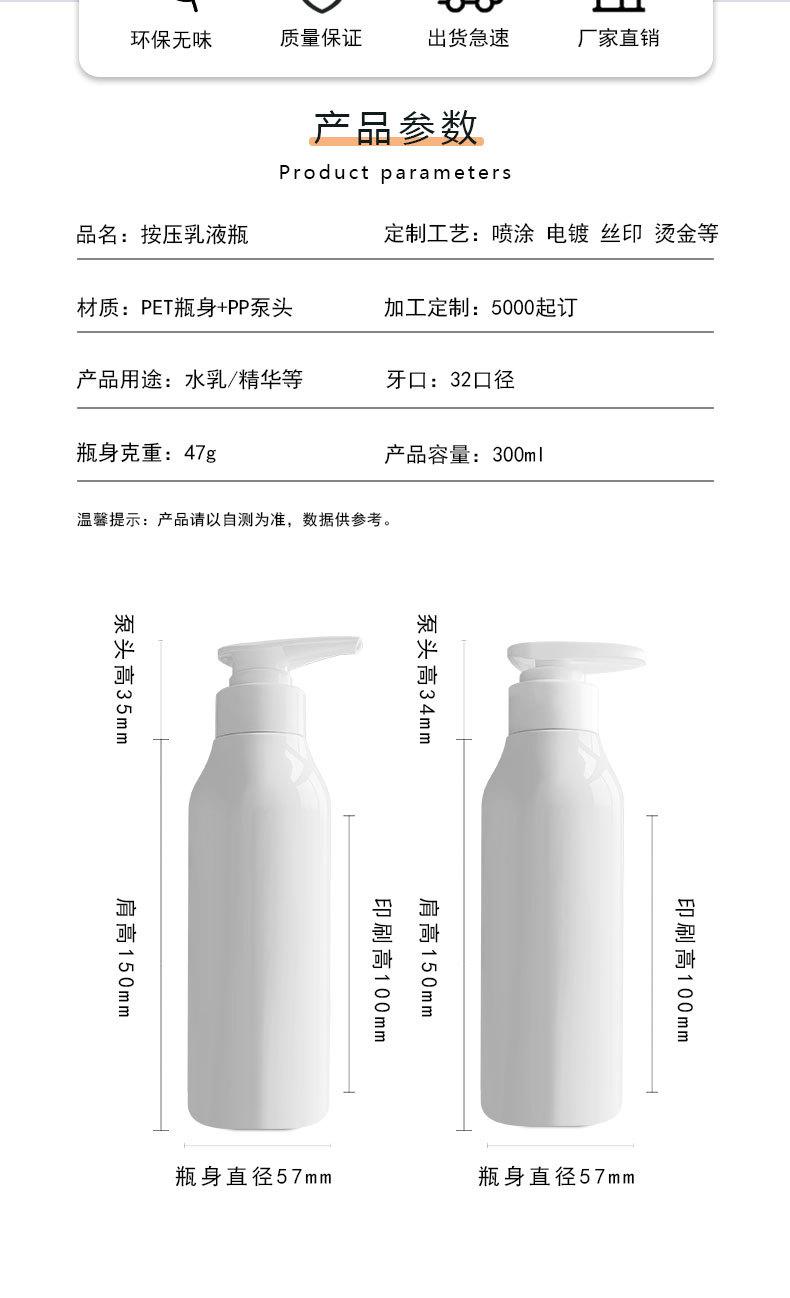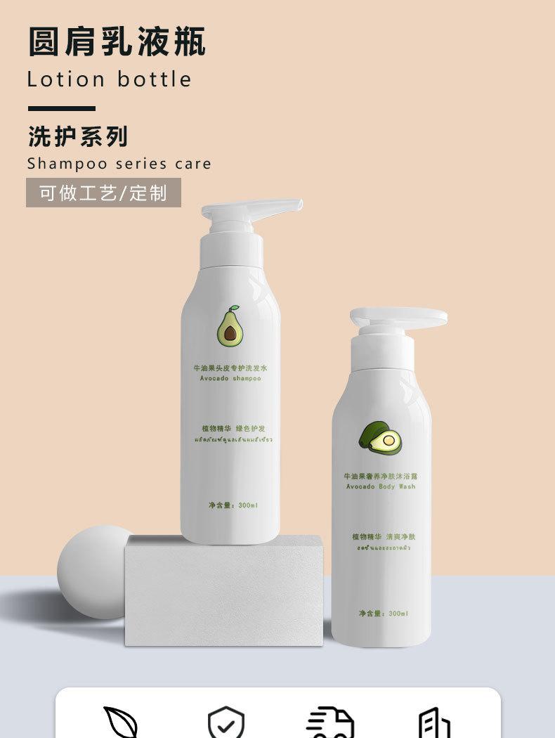Botella de plástico vacía personalizada para loción, champú, gel de ducha, reenvasado, redonda, con hombros inclinados, 300 ml