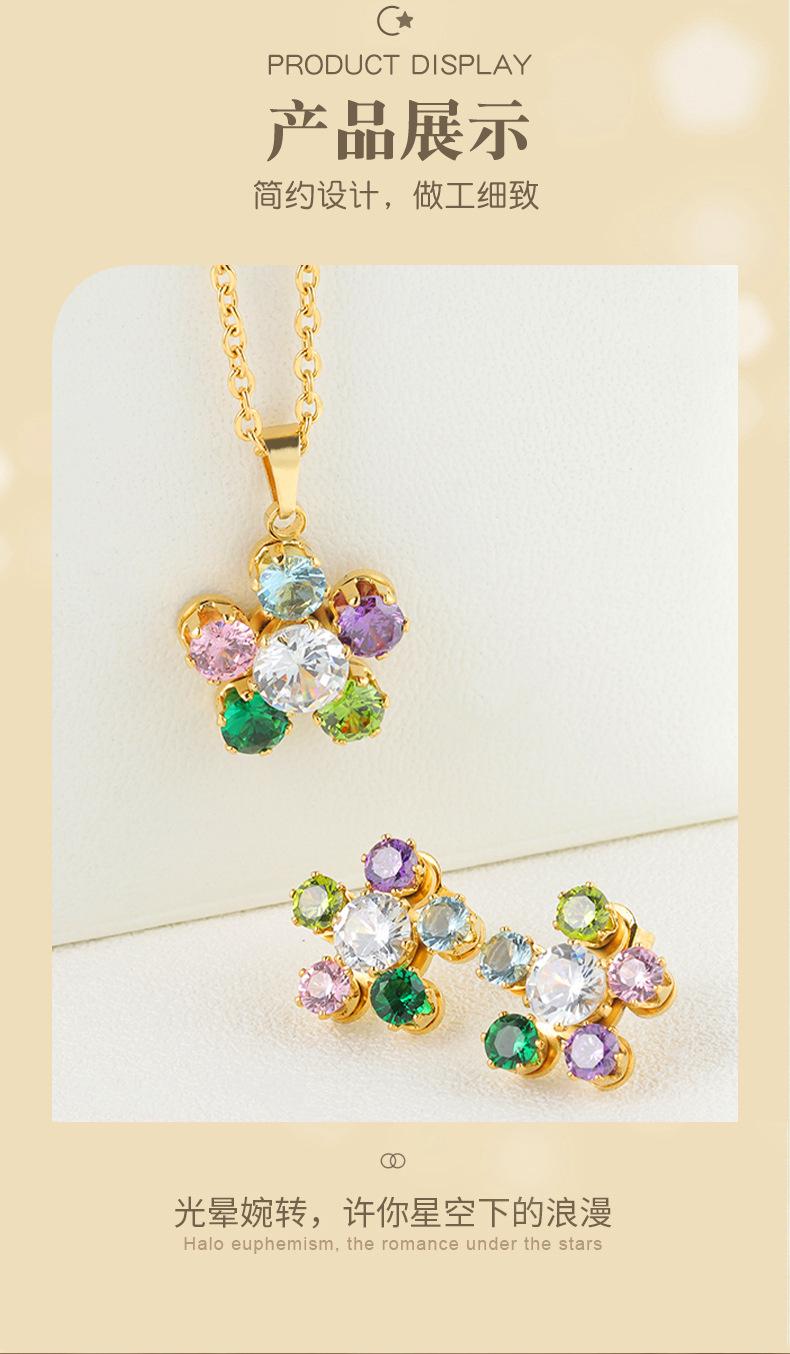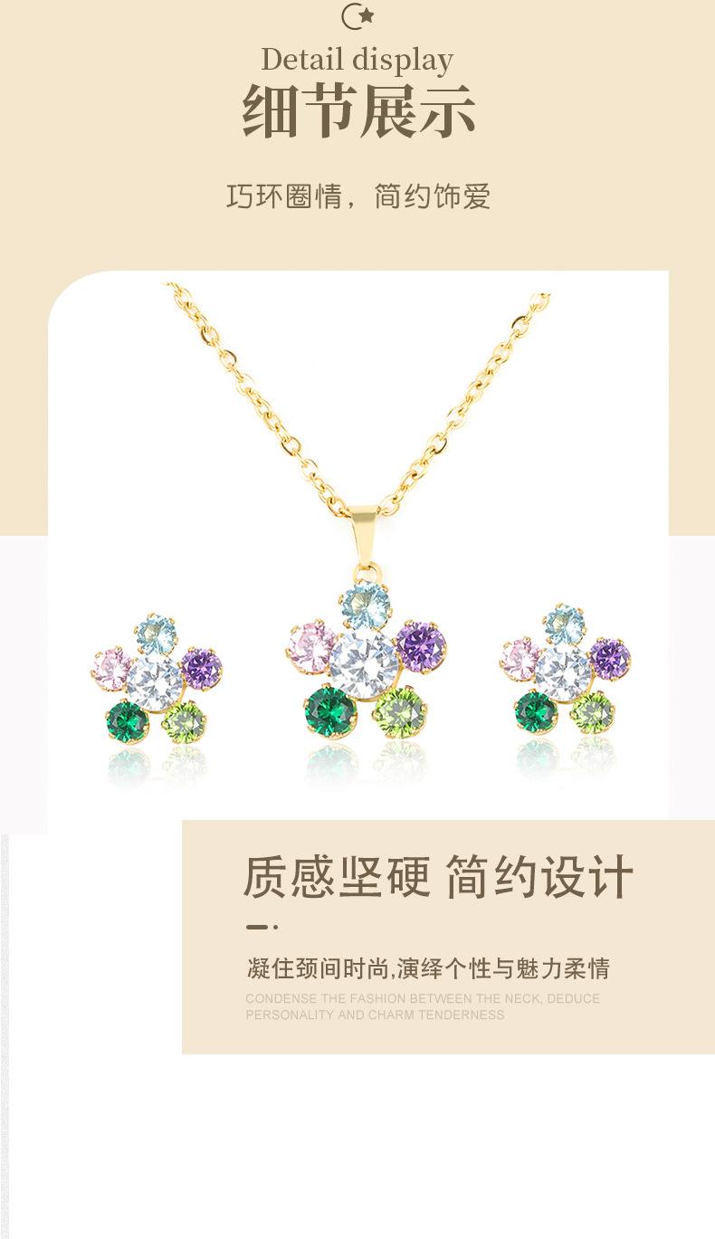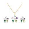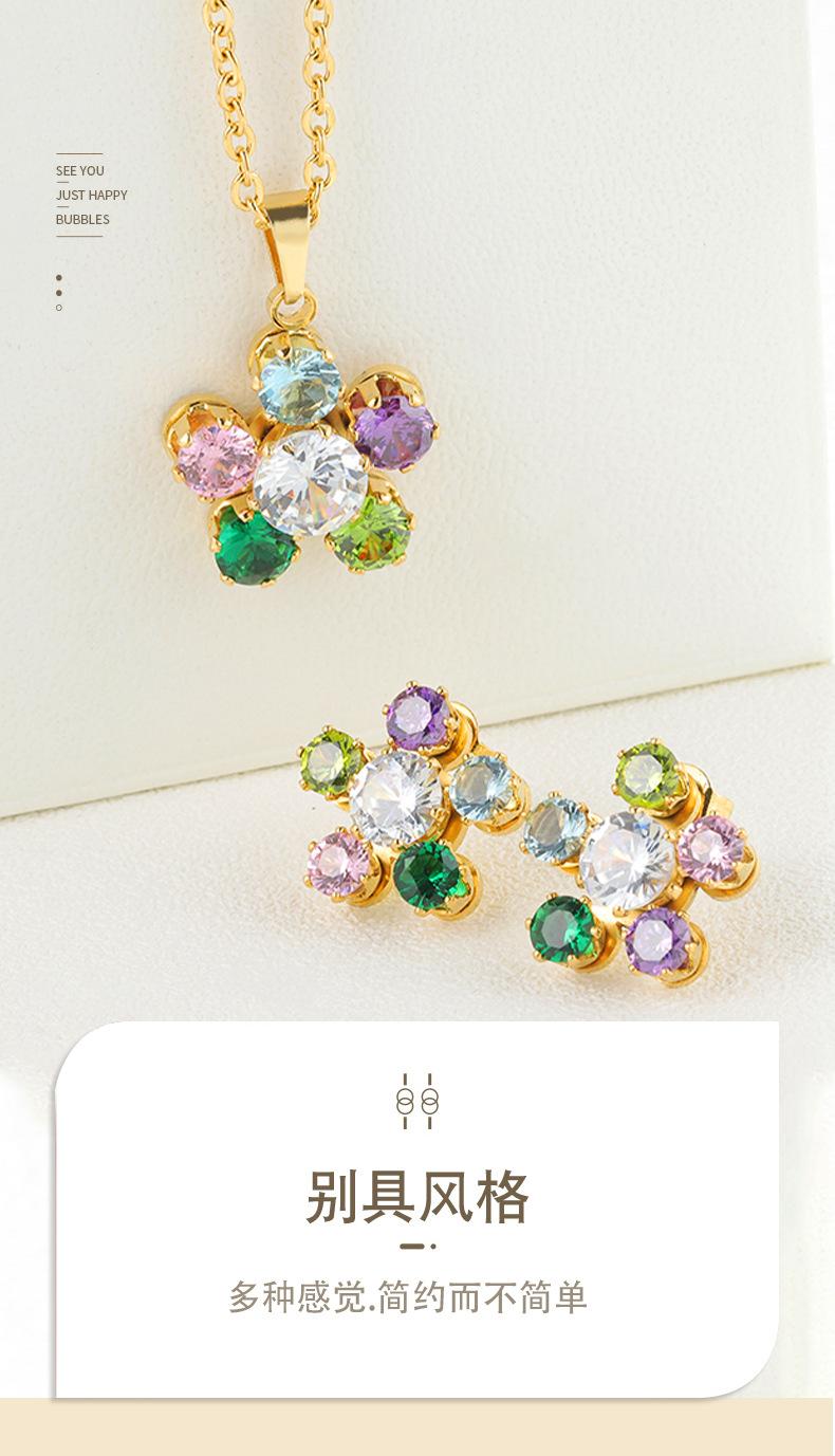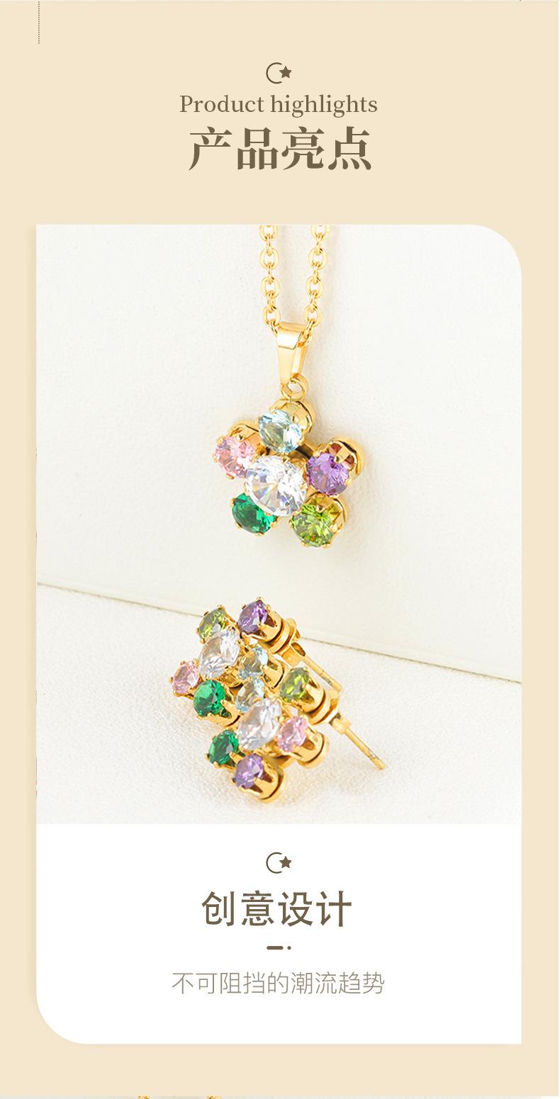 Juego de Joyería de Diamantes Clásico Versátil Colorido Aretes de Acero de Titanio + Collar de Acero Inoxidable Collar de Piedras Preciosas para Mujer Venta al por Mayor