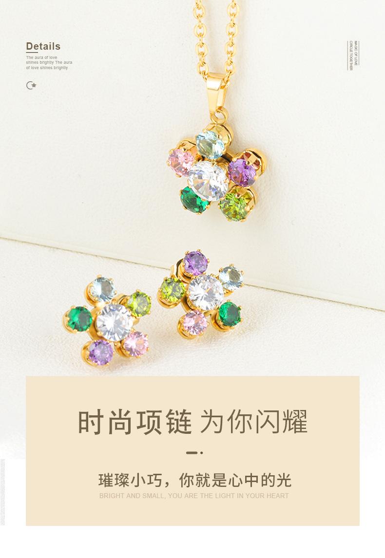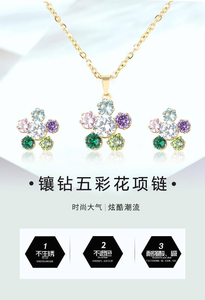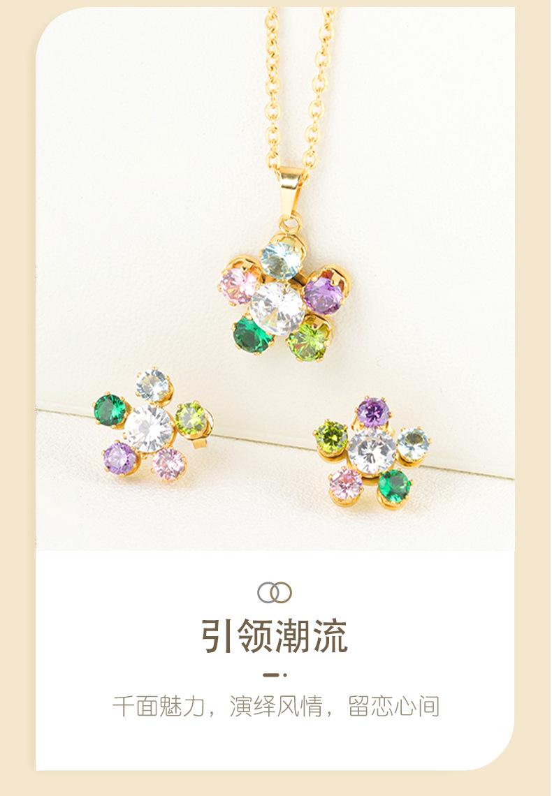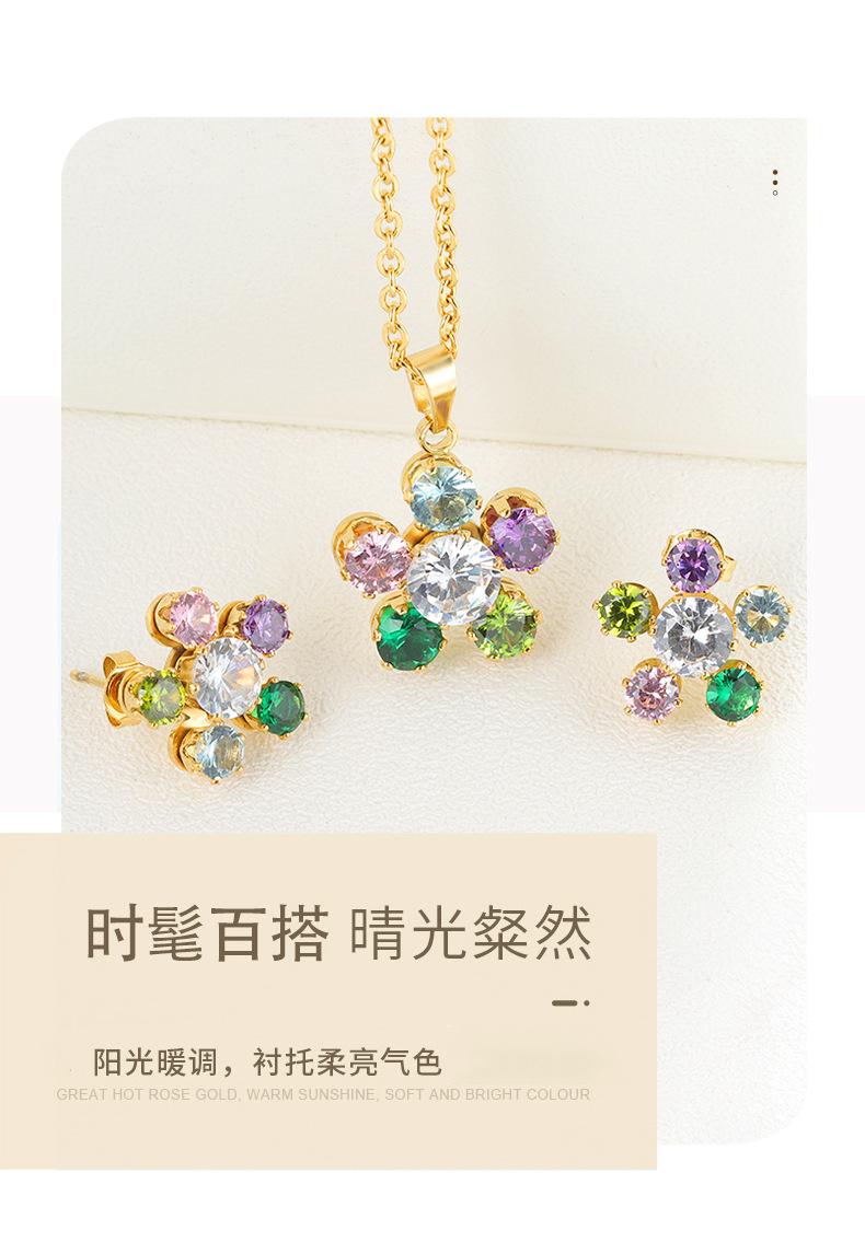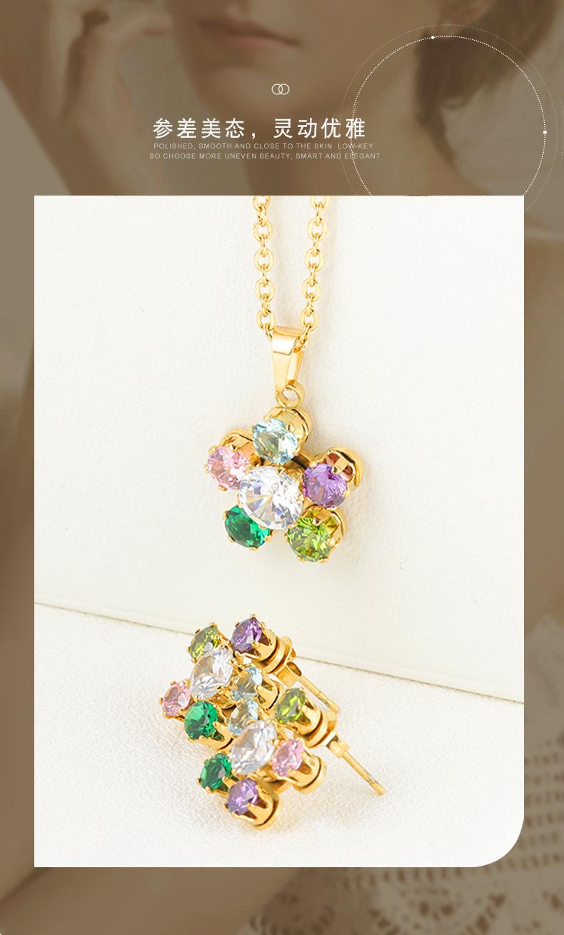 Juego de Joyería de Diamantes Clásico Versátil Colorido Aretes de Acero de Titanio + Collar de Acero Inoxidable Collar de Piedras Preciosas para Mujer Venta al por Mayor